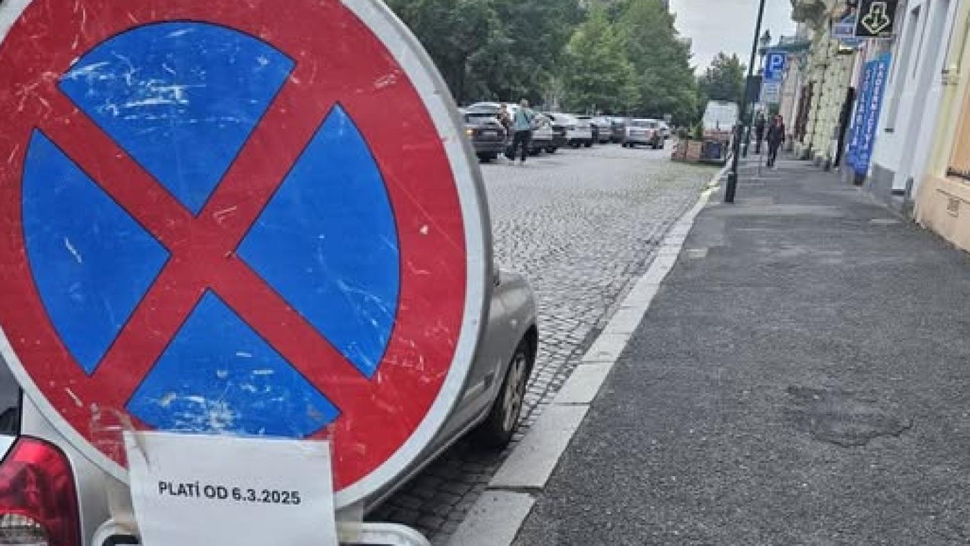 Značka zákazu zastavení se objevila v neděli v Kopeckého sadech. Blokovala hned 6 parkovacích míst, vozidlu, které zde stálo již od soboty, mohla hrozit pokuta a navíc všechna místa okolo byla plná.