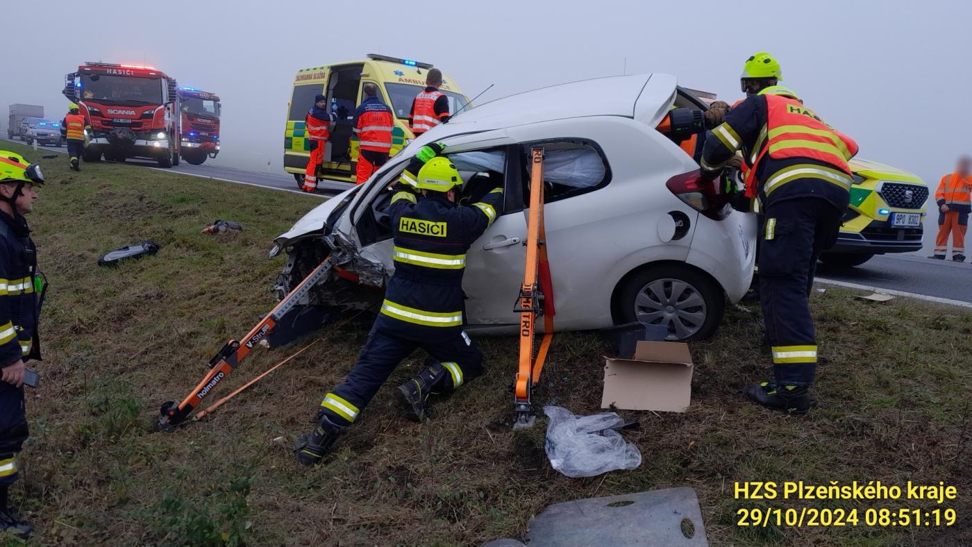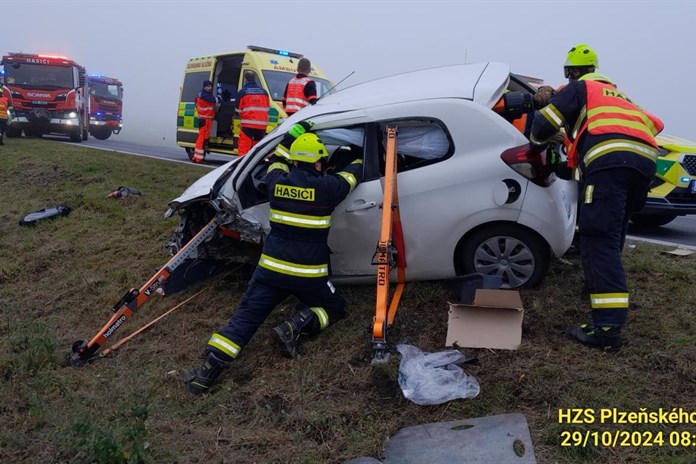 Podle mluvčího krajských hasičů Michala Holečka došlo ke střetu dvou aut před půl 9. "Jednalo se o čelní střet. Na místě jsme provedli vyprošťování za pomoci hydraulických vyprošťovacích nástrojů, spolupracovali se zdravotnickou záchrannou službou a provedli protipožární opatření," vypočítal.