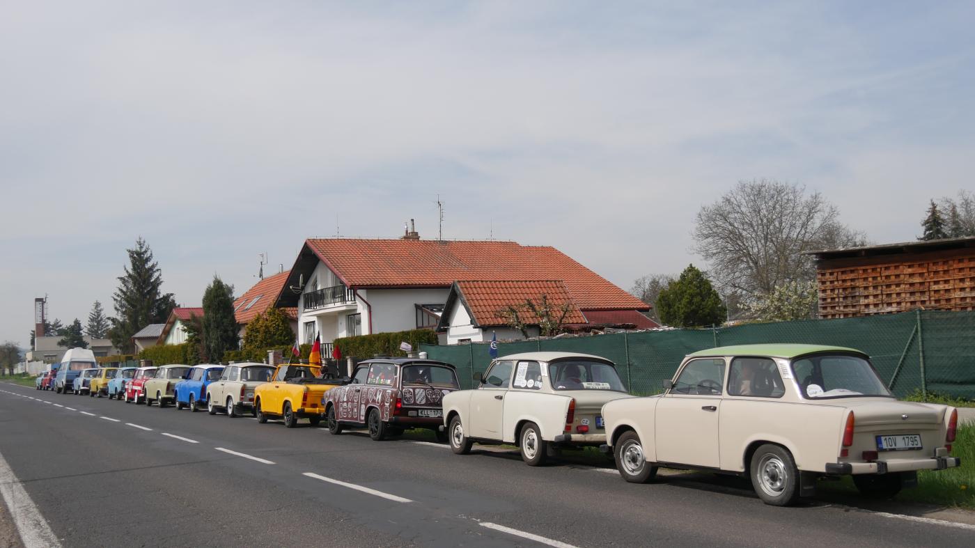 V sobotu ráno se sešli v Bolevci plzeňští tranbantisté. Celkem sedem posádek se vydalo na sváteční májovou vyjížďku na sever. V Plasích se připojily ještě dva vozy, na jesenické křižovatce už se sešly dvě desítky trabantů a jedna Škoda 120.