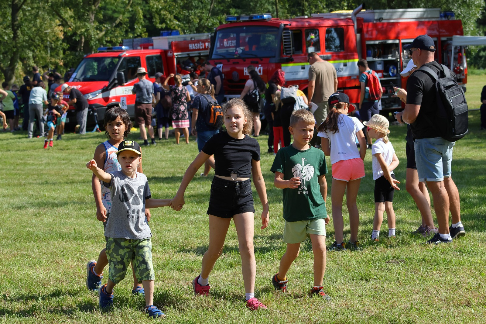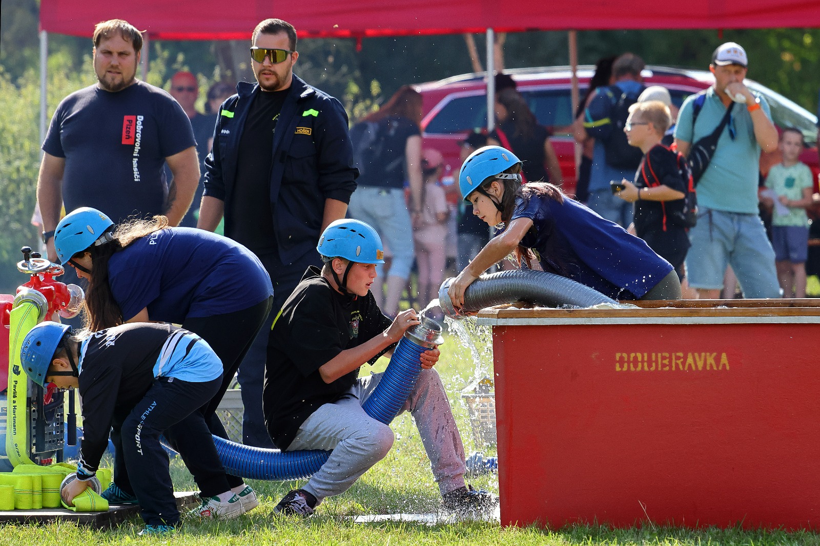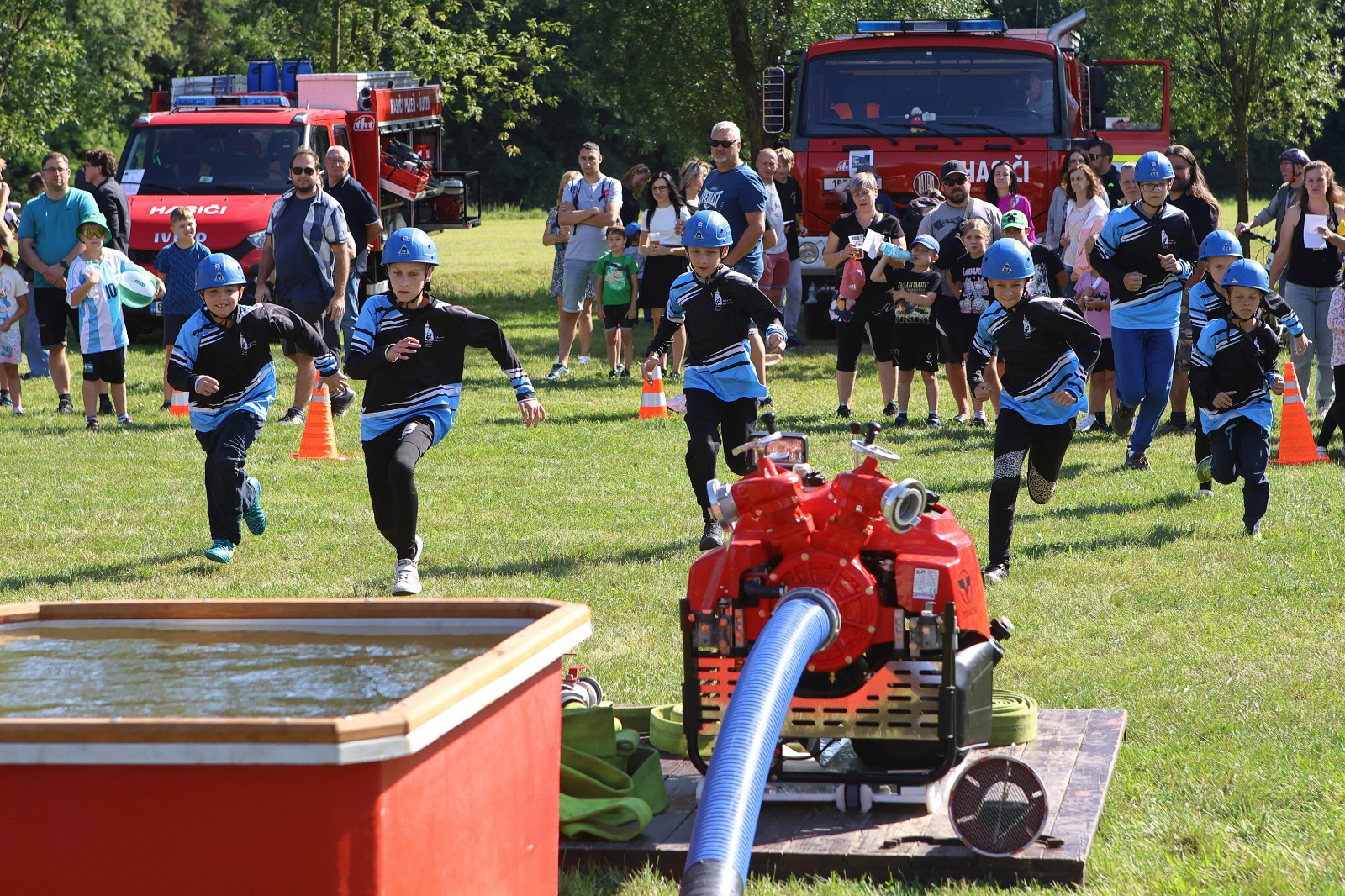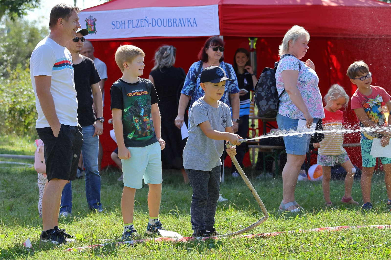 Na louce u sv. Jiří byla k vidění historická technika, současná technika, evakuační autobus a také záchranný člun. Hasiči přivezli ukázat i vozidlo, které se používá například při povodních v obtížně přístupných místech, jde o Pragu V3S. Děti si vozový park mohly nejen prohlédnout, ale také se do vozidel posadit a dozvěděly se řadu praktických informací. Připraven byl soutěžní okruh, který měl celkem 8 stanovišť. Děti hrály například speciální kuželky s hadicí, stříkaly proudnicí na terč, rozpojovaly a spojovaly hadice, překonávaly překážkovou dráhu nebo skákaly v pytli. Za splnění úkolů získali soutěžící odměnu. Připraveny byly i doprovodné disciplíny, děti si mohly vyzkoušet některé z důležitých uzlů nebo malovat. K vidění byl požární útok mladých dobrovolných hasičů. A nejen to. „Na závěr mohli diváci sledovat hašení požáru domečku z kartonu mladými hasiči. Děti si tak reálně vyzkoušely, jak takové hašení probíhá,“ popsal starosta Sboru dobrovolných hasičů Plzeň Doubravka Roman Svoboda.