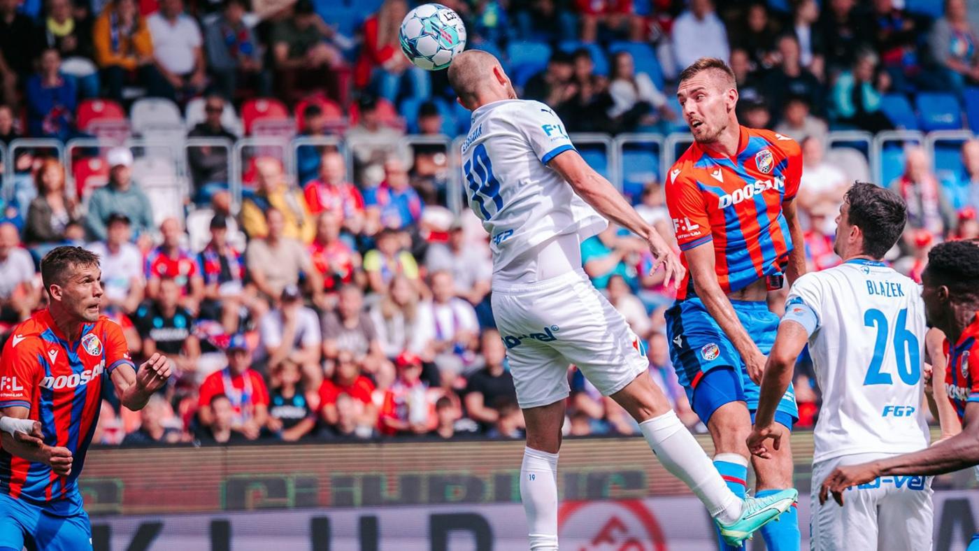 Utkání v Ostravě začalo ve vysokém tempu. Hned na úvod orazítkoval Tomáš Chorý břevno domácí branky. O chvíli později zase zazlobil Baník, a to když Kpozo šajtlí našel Klímu. Jeho rána letěla nakonec mimo tři tyče. V prvním poločase to hodně jiskřilo a emoce pracovaly na obou stranách. Obrovskou šanci si vypracovali viktoriáni deset minut před koncem prvního dějství. Lukáš Kalvach na okraji pokutového území vyslal přihrávku na Pavla Šulce, který se ocitl úplně sám. Jeho přízemní střelu k pravé tyči vyrazil brankář Letáček. Krátce před přestávkou si Plzeňští znovu vytvořili nebezpečnou situaci. Z pravé strany vyslal centr Jan Kopic, zadní tyč zavíral Tomáš Chorý, jeho hlavička skončila nakonec mimo hřiště.