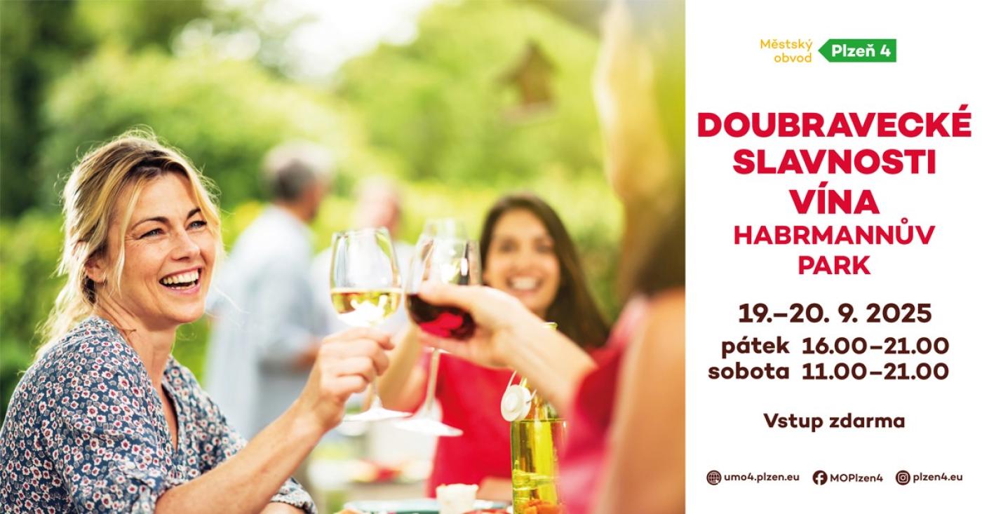 Celkem 14 vinařství dorazí na tradiční Doubravecké slavnosti vína, které se uskuteční v pátek 19. září a v sobotu 20. září v Habrmannově parku na Doubravce. Vstup na akci je zdarma.
