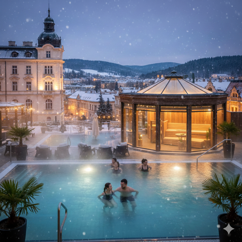 • Saunia Thermal Resort (Karlovy Vary): Tohle je naprostý „must-visit“. Venkovní bazén s vřídelní vodou vyhřívaný na příjemnou teplotu i v mrazu nabízí ikonický výhled na město. Saunový svět s několika typy ceremoniálů je pak třešničkou na dortu.