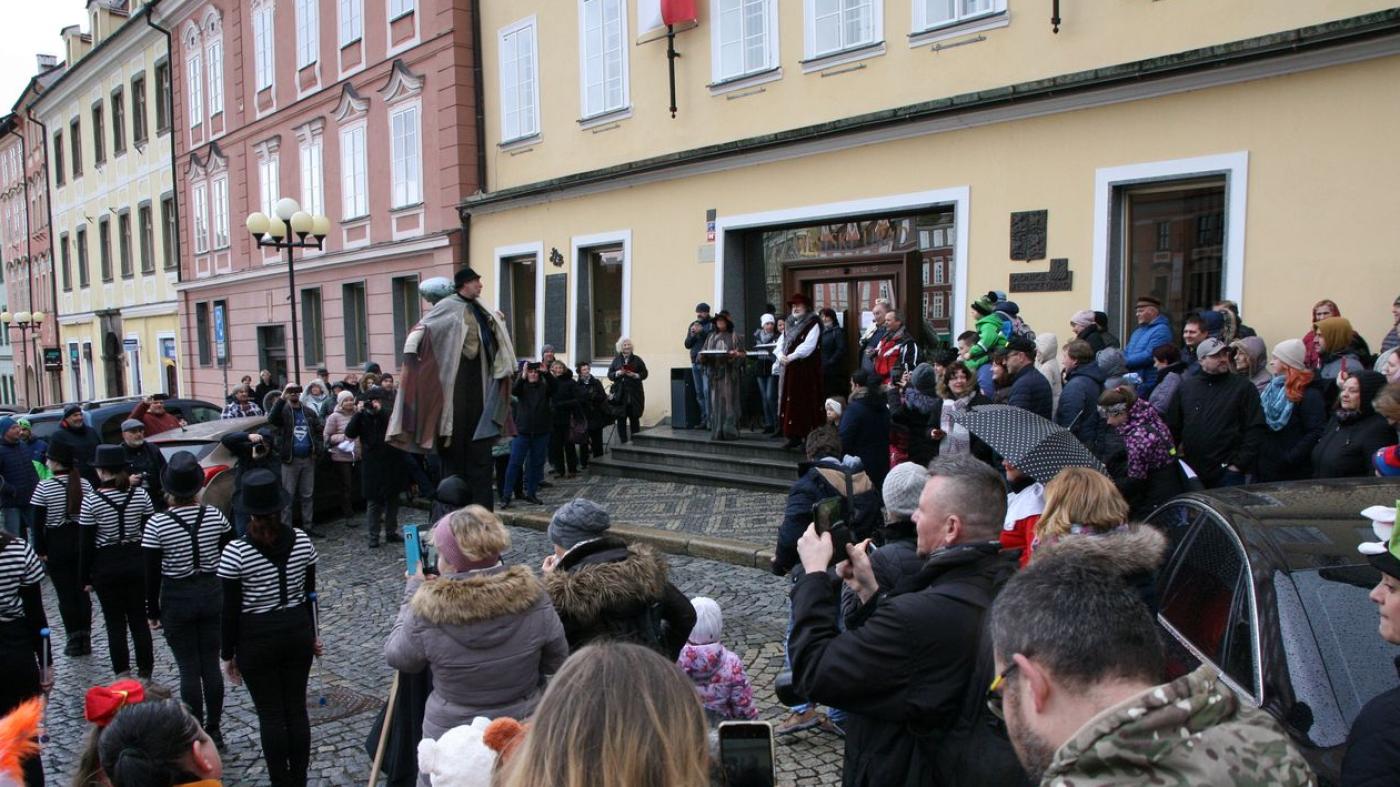 14:15 hodin - povolení masopustního průvodu městem za doprovodu kapely Bez ladu