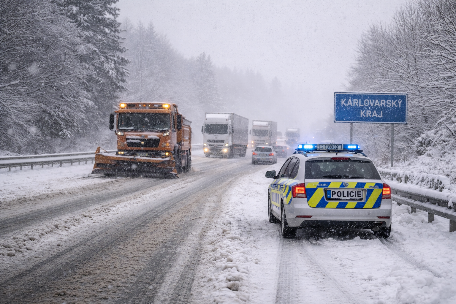 V Karlovarském kraji sněžilo od čtvrteční noci a kvůli několikadenním mrazům zůstává sníh na silnicích ležet. Sněžit v regionu přestalo kolem 9. hodiny, přesto podle údajů Ředitelství silnic a dálnic (ŘSD) a policie stále komplikuje dopravu na mnoha místech. Policisté kvůli počasí zasahovali u zhruba dvaceti dopravních nehod, naštěstí se obešly bez zranění.
