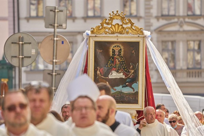 Průvod městem s obrazem Panny Marie Klatovské