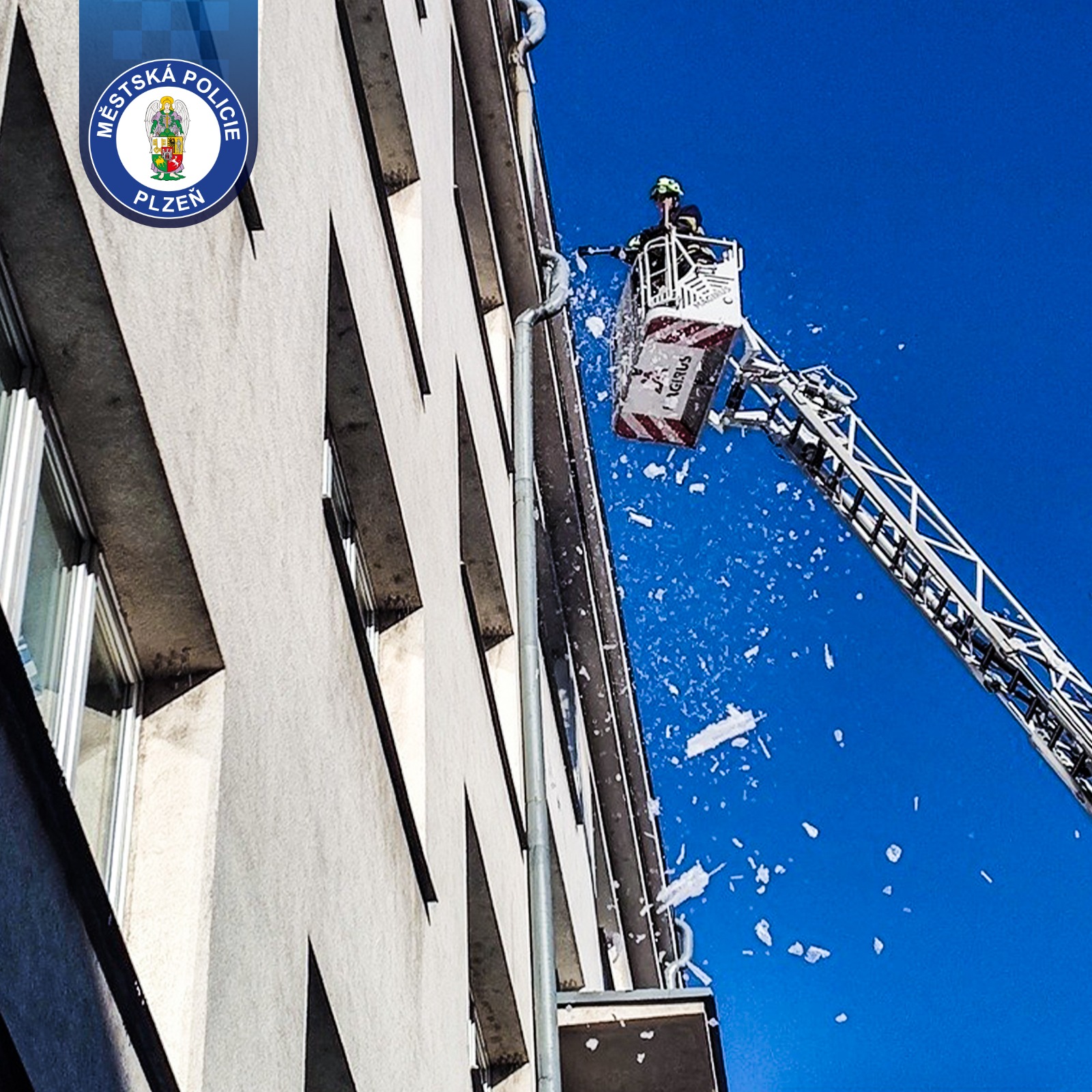 Frekventovaná Sladkovského ulice v Plzni musela být v neděli dopoledne částečně uzavřena. Ze střechy jednoho z domů přímo nad zastávkou MHD začaly na chodník padat kusy ledu. Kvůli bezpečnosti kolemjdoucích i řidičů musela městská policie okamžitě vytvořit bezpečný perimetr a povolat na pomoc hasiče s technikou.