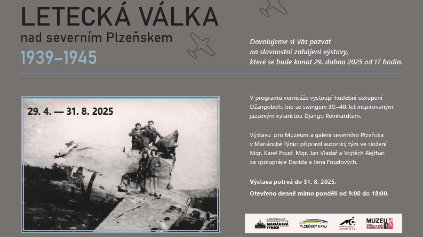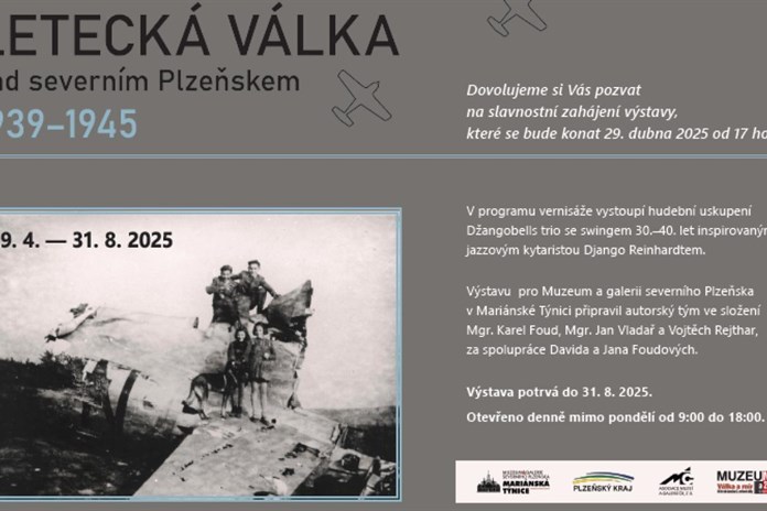 Co mají společného Vejprnice, Nynice, Líšťany, Obora nebo rybník Vožehák u Kožlan? A jak tato místa vstoupila do dějin letecké války nad územím předmnichovského Československa? Tematickou výstavu s názvem „Letecká válka nad severním Plzeňskem 1944–1945“ připravilo Muzeum a galerie severního Plzeňska v Mariánské Týnici jako připomínku 80. výročí od konce 2. světové války. Výstava bude zahájena 29. dubna.
