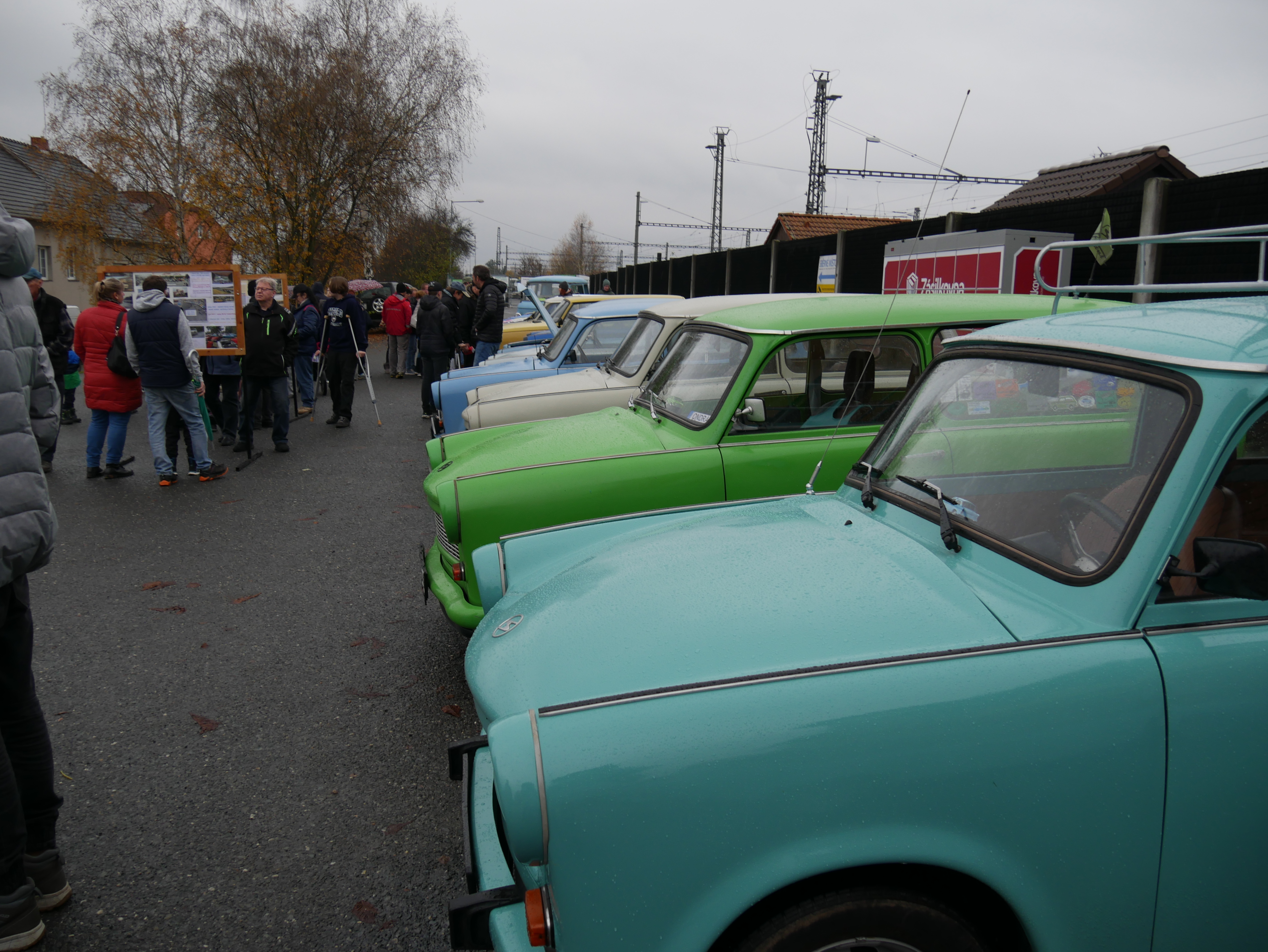 Ve čtvrtek v 9:00 se u OC Globus sešlo na pětadvacet posádek a společně se vydaly nejprve do obce Tatiná, kde se připojilo ještě několik dalších vozů. Celkově se sešlo 24 trabantů, 2 wartburgy, 1 barkas a 5 vozů jiných značek a dohromady asi pětapadesát lidských účastníků akce. Zatímco veterány obhlíželi před obecním úřadem místní obyvatelé, účastníci vyjížďky se zašli podívat do zdejšího Muzea elektrotechniky. K vidění je zde kolem dvou tisíc artefaktů, jako jsou žárovky, vypínače, jističe, motory, elektronky a další dnes už historické exponáty, o kterých umí poutavě vyprávět zakladatel muzea Jan Doležel. Najdeme zde třeba klešťový ampérmetr, stokilový motor vyrobený a patentovaný v Třetí říši nebo zkoušečku Vadas. Některé exponáty byly vyrobeny již před sto lety, a přesto stále fungují.