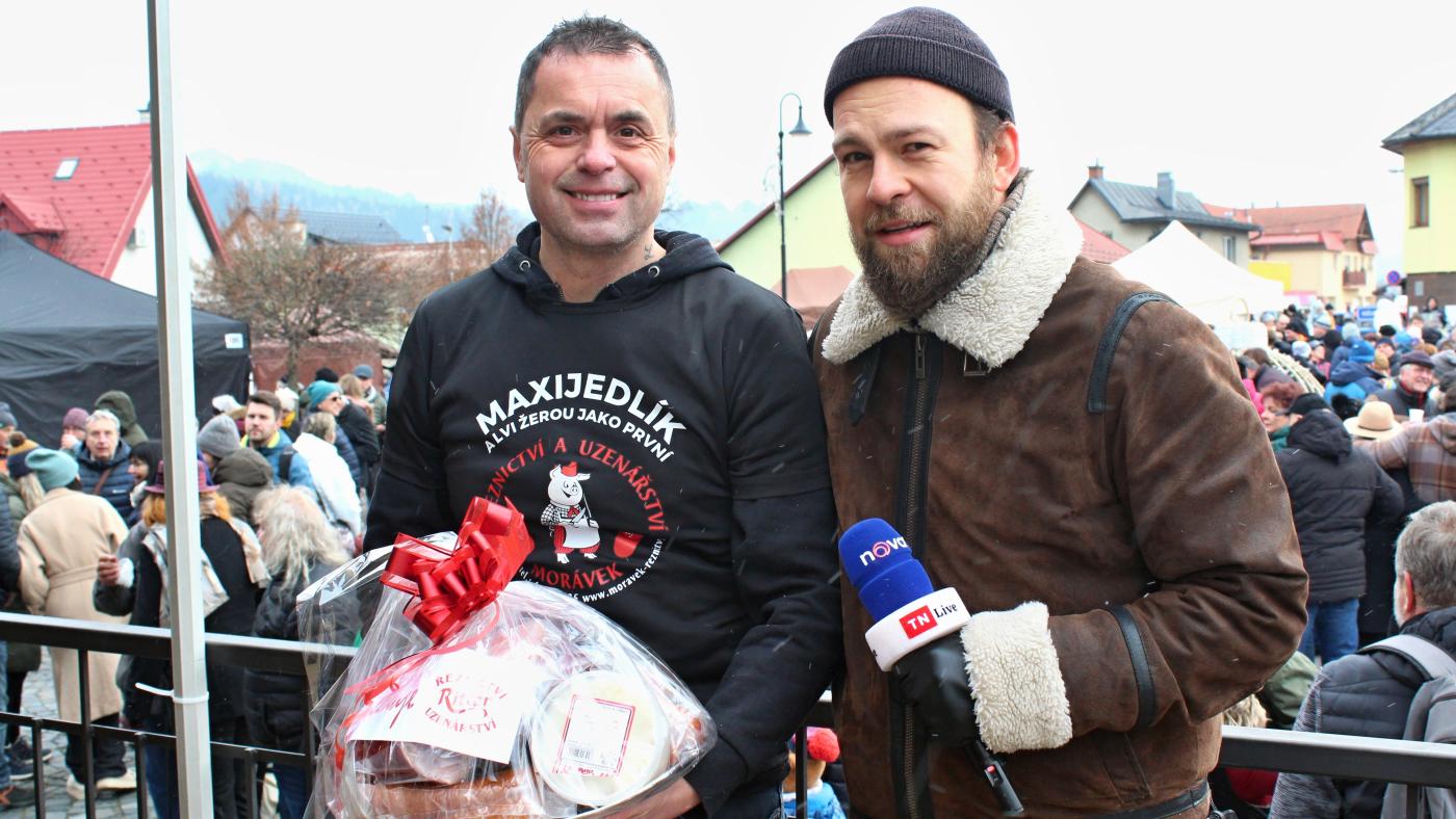 HOVĚZÍ - Kam přijede, tam vítězí. To už je v případě maxijedlíka Jaroslava Němce z obce Bystré na pomezí Čech a Moravy letitá zvyklost. Sympaťák Jarda zpravidla kromě pořádných dávek nejrůznějších po(ne)chutin vlastně nemá rovnocenné soupeře. To spíše obdivovatele, někdy i odvážné sekundanty. Jako naposledy v Hovězí na Kateřinském jarmarku, kde suverénně vyhrál pětiminutovou soutěž v pojídání jitrnic. Po jeho boku si zazávodil a originálně zapracoval i televizní reportér Michal Borovský.