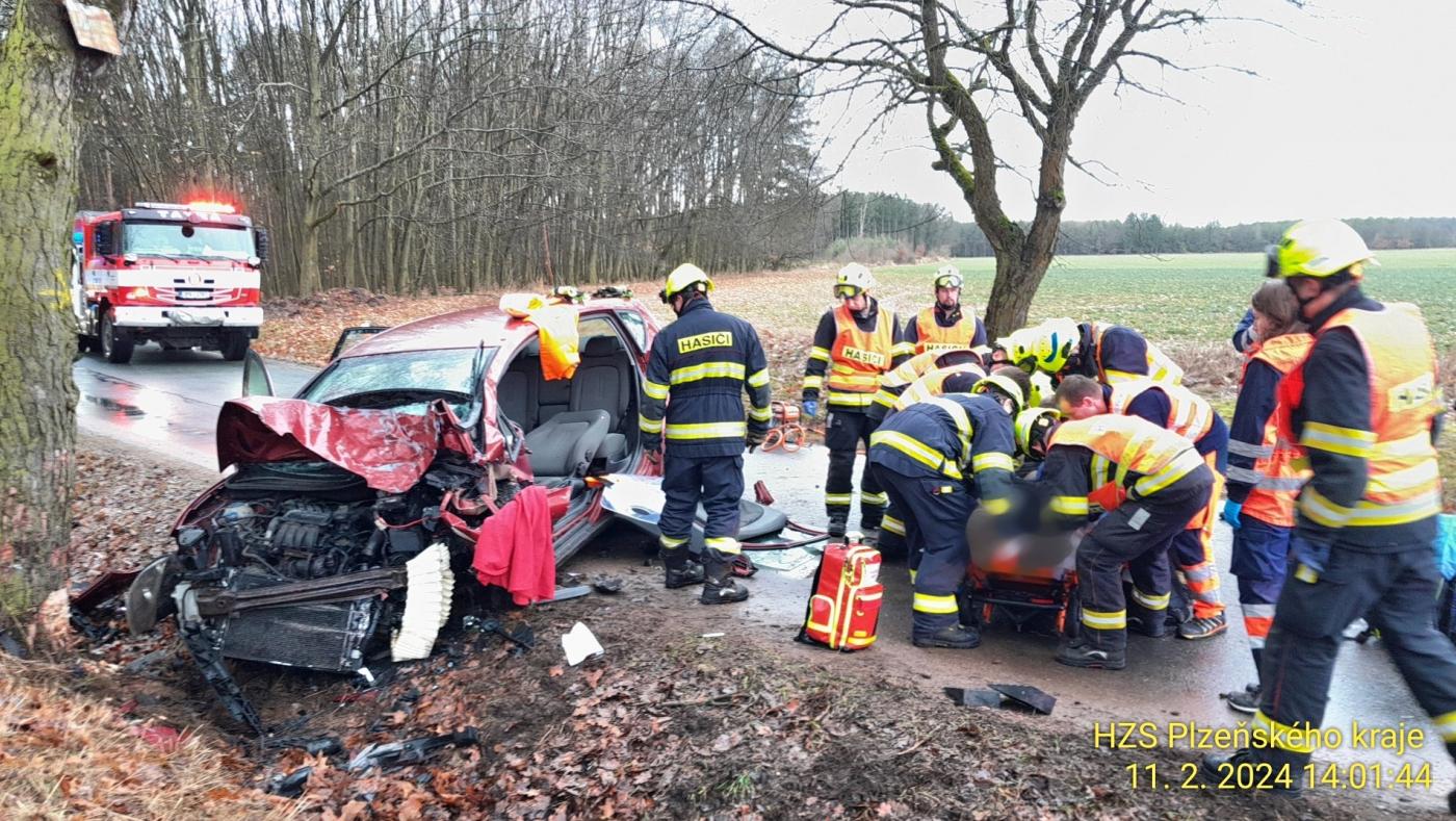 Středně těžká zranění utrpěl dvaadvacetiletý muž při nedělní nehodě osobního auta na silnici mezi Vochovem a Vejprnicemi. Mladíka, který s vozidlem narazil do stromu, museli vyprošťovat hasiči.