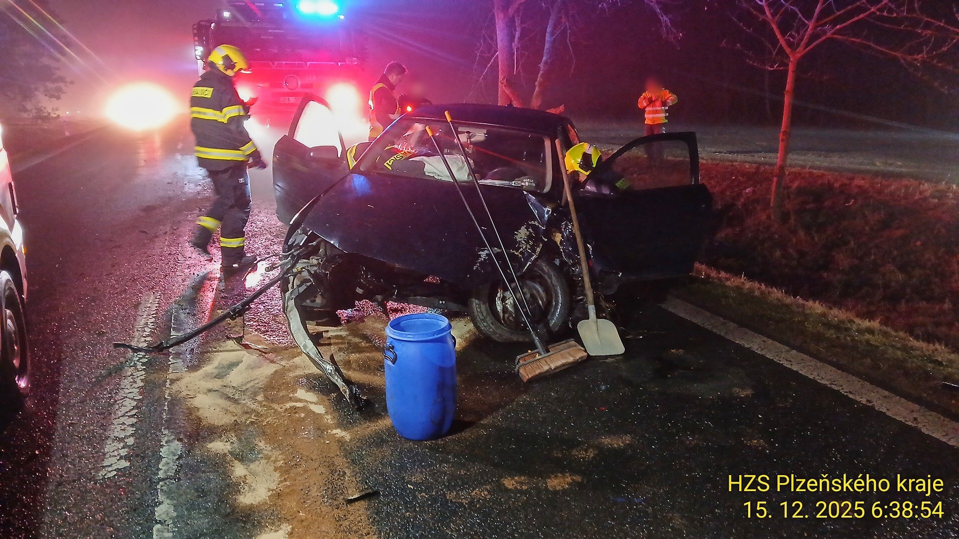 Mladý řidič utrpěl těžká zranění. "Muž ročník 2004 byl naší posádkou převezen do zdravotnického zařízení se středně těžkým zraněním hlavy," dodal mluvčí krajských záchranářů Martin Štěpán.