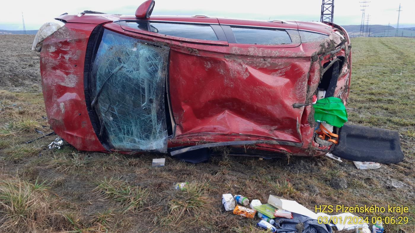 "Řidič ročník 1999 s vozidlem Citroën, který jel ve od Plzně na Přeštice, na přímém úseku silnice zřejmě nepřizpůsobil rychlost jízdy stavu a povrchu komunikace a s vozidlem havaroval vlevo mimo vozovku," uvedla policejní mluvčí Eva Červenková.