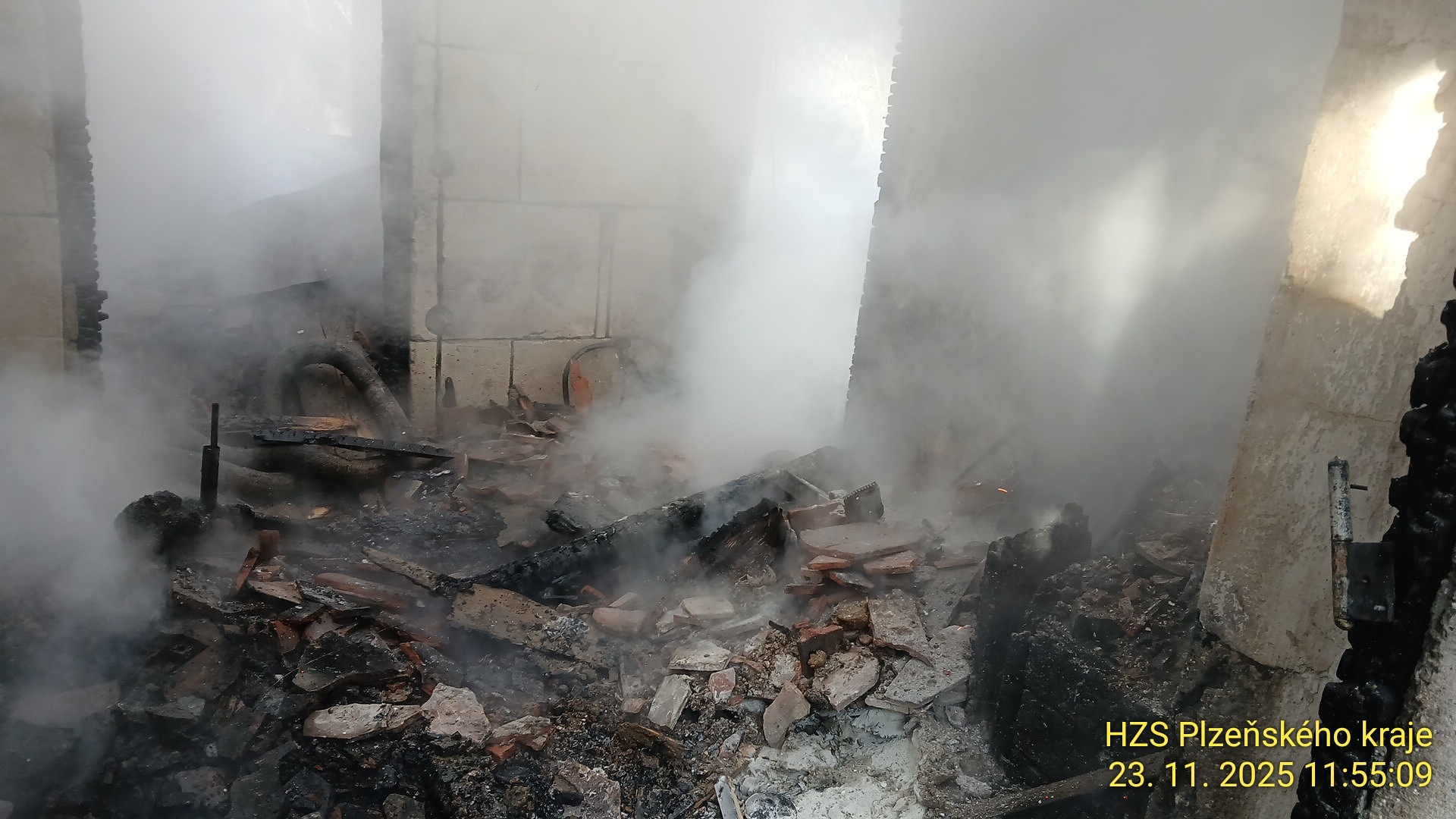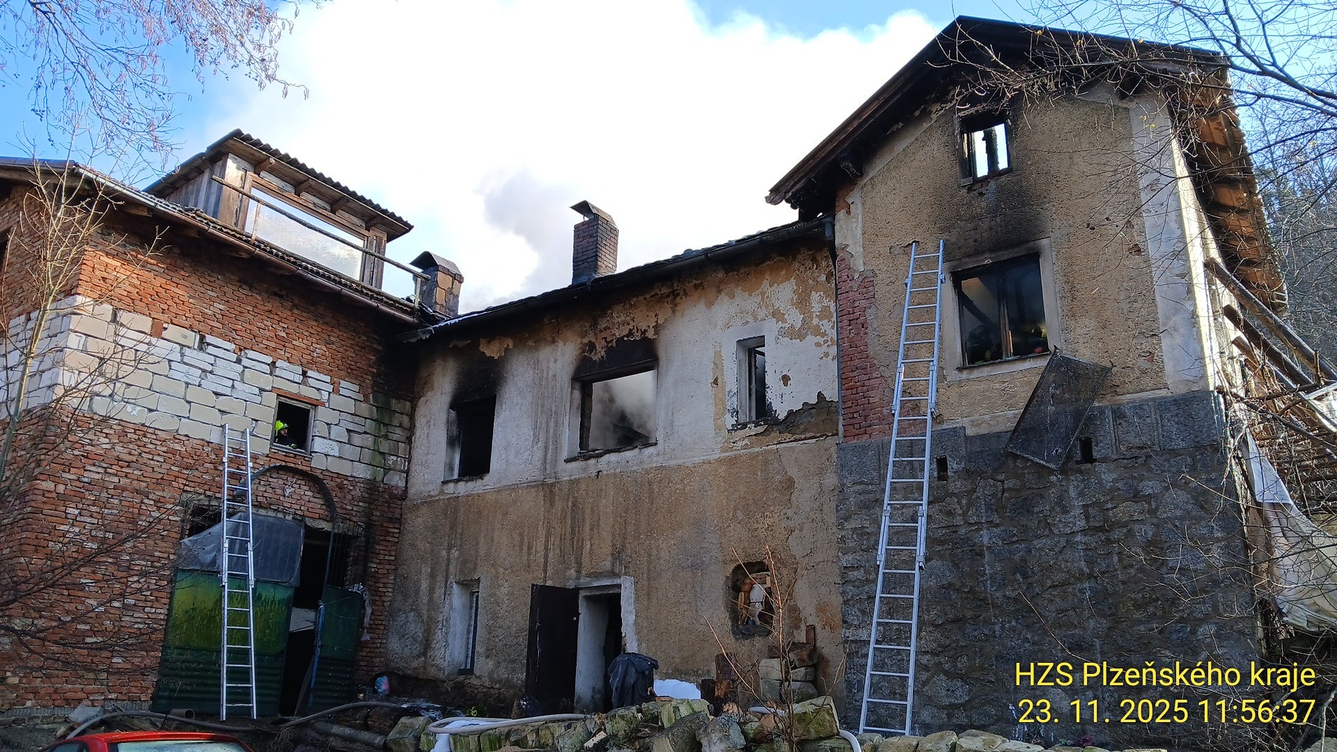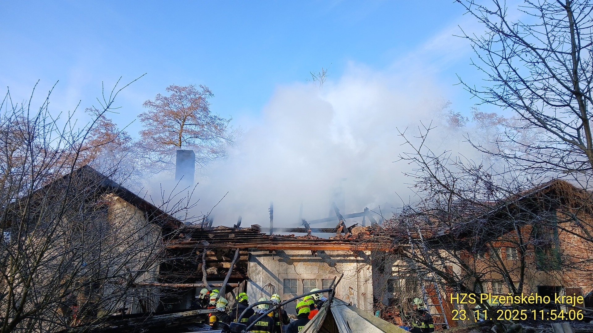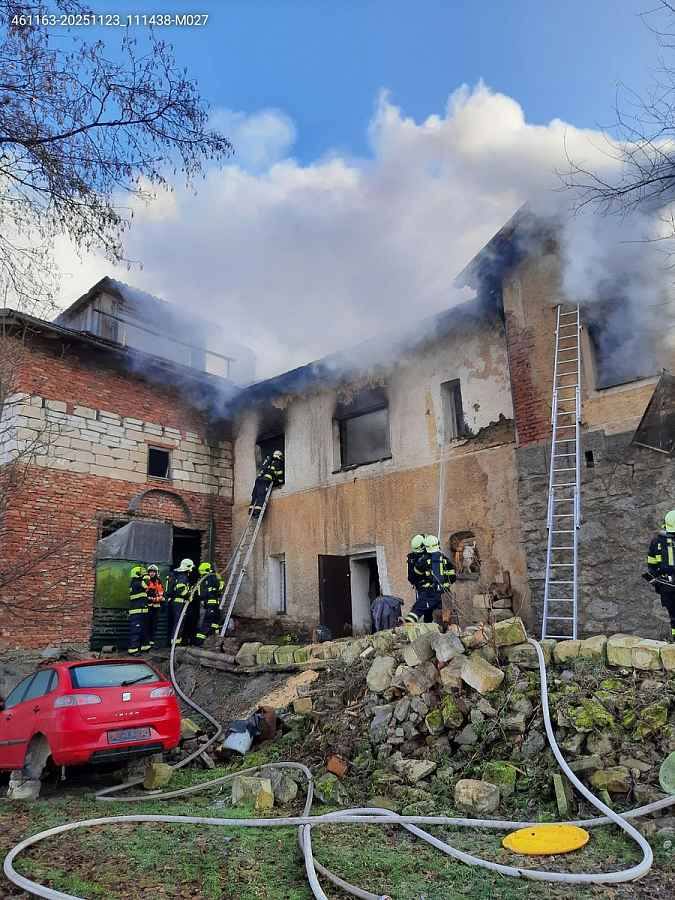 Hasiči vyjížděli k požáru krátce před půl 11. "Před příjezdem prvních jednotek byly všechny osoby mimo budovou. Po zahájení hasebních prací došlo uvnitř k výbuchu tlakové láhve, která byla dopředu avizovaná, že se nachází v kuchyni," uvedl mluvčí krajských hasičů Michal Holeček s tím, že nikdo nebyl na místě zraněn.