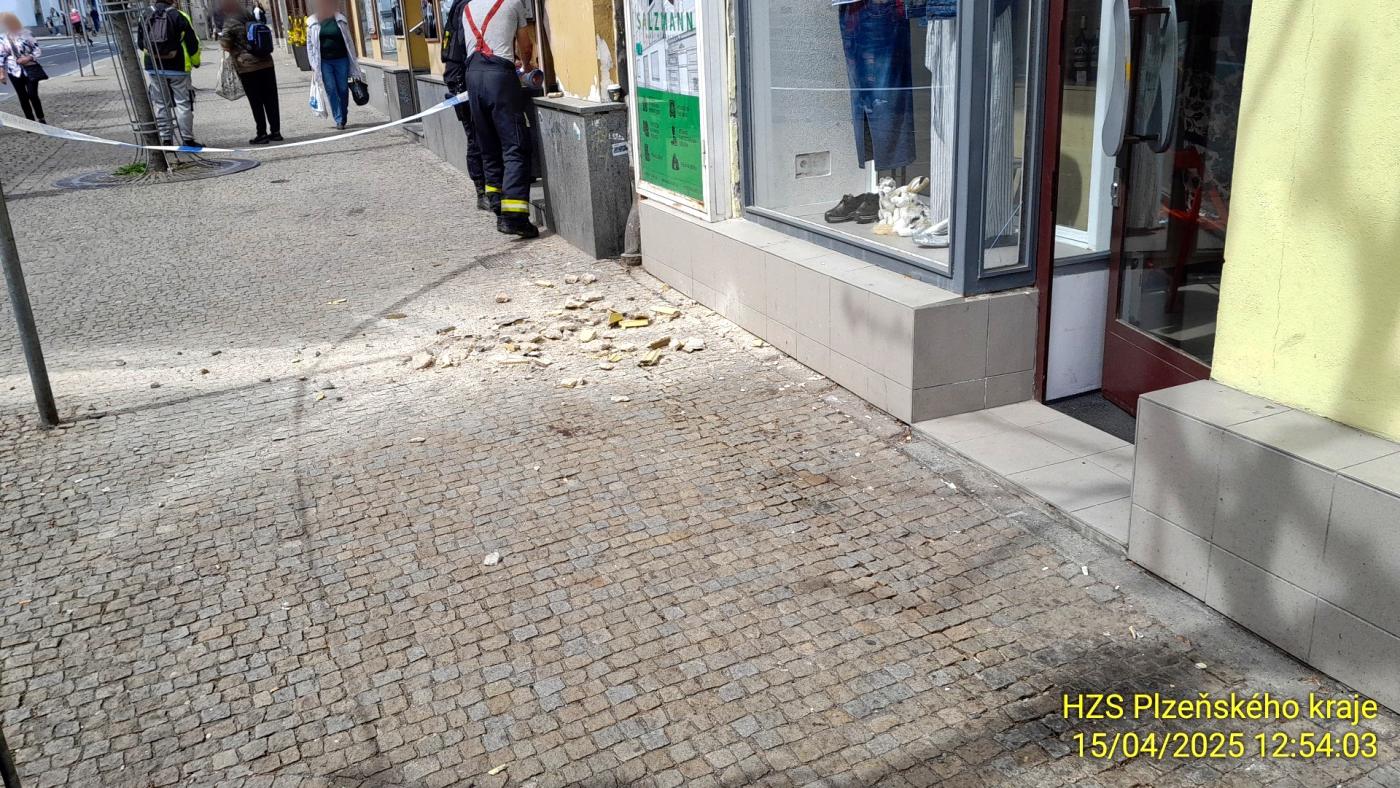 "Krátce po půl jedné došlo na Americké třídě v Plzni k pádu většího množství omítky z podstřešní římsy jednoho z domů. Omítka naštěstí nikoho nezasáhla," potvrdil mluvčí krajských hasičů Petr Poncar.