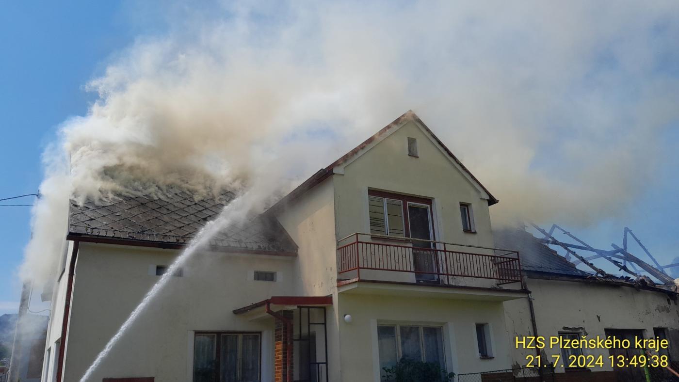 Požár vypukl krátce po 13. hodině. "Dle velitele zásahu se jedná o velmi komplikovaný zásah, požárem bylo zasaženo několik budov. Zatím provádějí požární obranu a chrání okolní budovy dokud nebude na místě dostatek sil a prostředků pro požární útok," uvedl mluvčí krajských hasičů Michal Holeček.