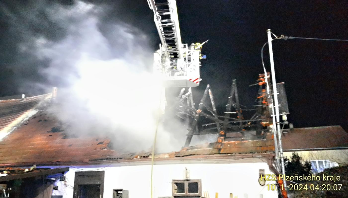 Podle mluvčího krajských hasičů Petra Poncara vypukl požár po 1. hodině v noci. "Hořelo starší jednopodlažní stavení. Z vnitřku jsme vynesli jednu propanbutanovou lahev. Po rozebrání konstrukcí střechy a dohašení všech ohnisek jsme objekt předali majiteli," popsal.