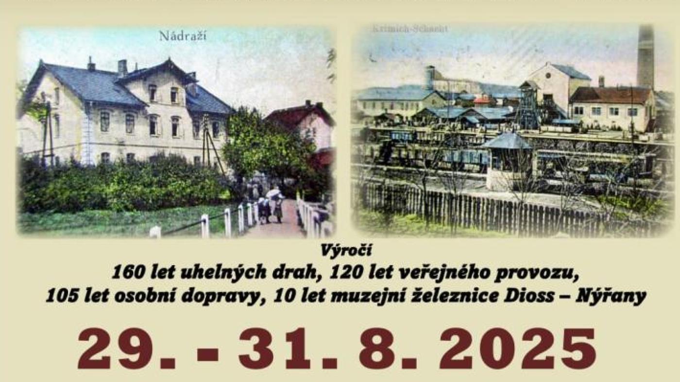 9:00 speciální historický vlak HAVÍŘ se dvěma parními lokomotivami. Vlak pojede po trasách bývalých dolů Humboldt, Ziegler, Krimich I. a Krimich II. Předpokládaný příjezd zpět do Nýřan do 12:00.