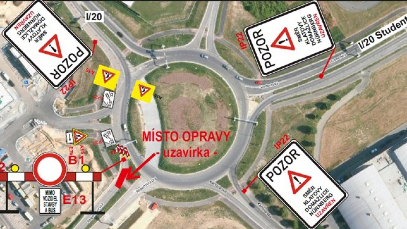 Oprava silnice začne rozmisťováním provizorního dopravního značení v 6:00, samotná komunikace bude uzavřena po 8:00 a práce by měly skončit před polednem. Objízdná trasa po dobu úprav povede Studentskou ulicí po silnici I/20, poté Gerskou na silnici č. III/180, dále po ulici Karlovarská a Na Chmelnicích přes Vinice zpět na silnici č. II/215 do Regensburské.