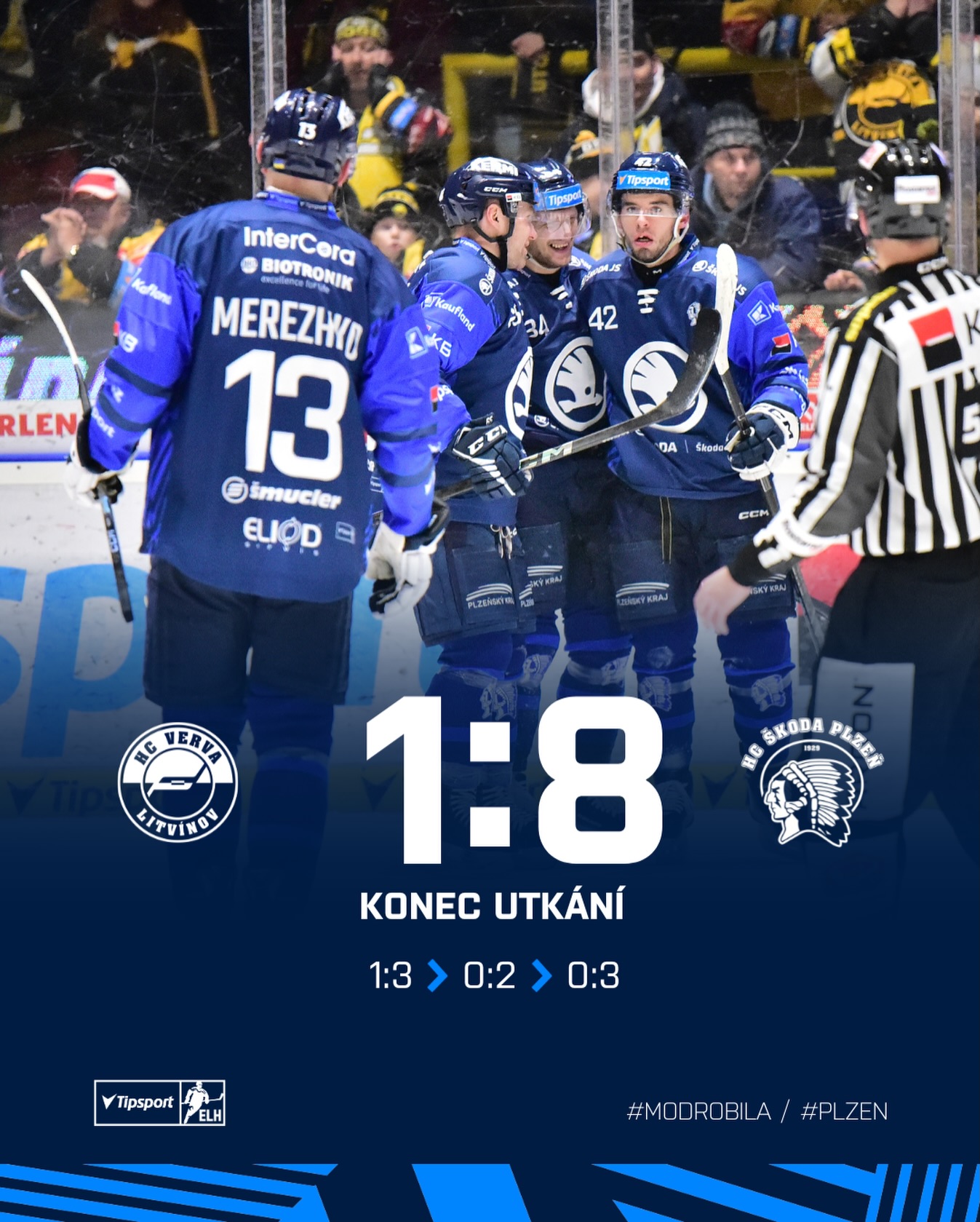 Nejvyšší výhru v sezóně zaznamenali hokejisté Plzně na ledě posledního Litvínova. Indiáni rozstříleli Vervu 8:1, hattrickem se na vítězství podílel Matyáš Filip, který dal dva góly v oslabení. Dvě trefy vsítil Michal Teplý.