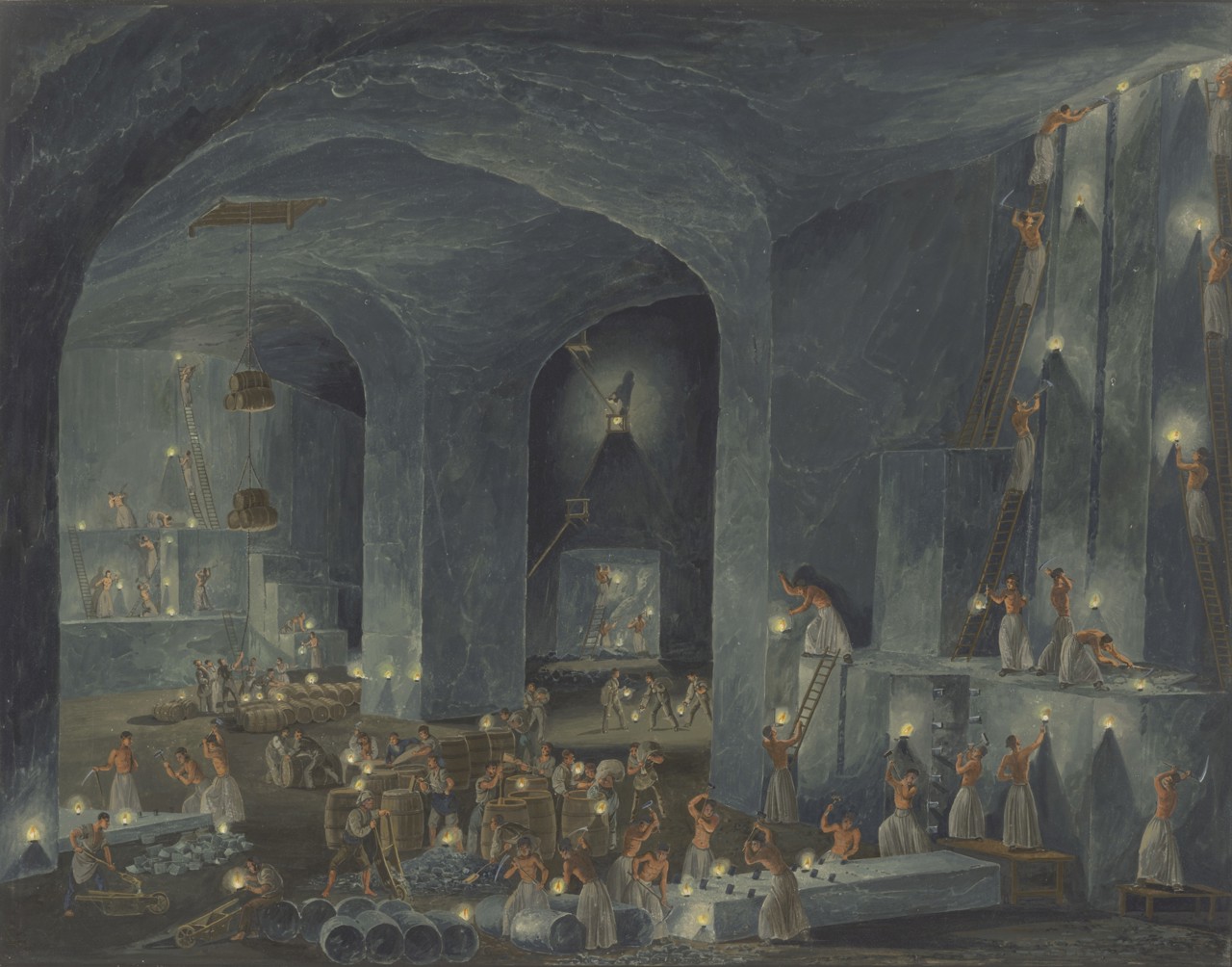 "Můžeme říci, že v podzemí nacházíme různé protikladné významy, které dobové umělce přitahovaly a oni je zachycovali ve svých dílech," uvedla Kolářová. Umělci v podzemí malovali jen skici, podle nichž pak v ateliérech tvořili svá díla. Vydávali se ale sami zachytit atmosféru v dolech, účastnili se také například výprav za objevováním jeskyní Moravského krasu nebo do nitra pražské kanalizace či příbramských dolů. "V podzemí umělci nacházeli tajemství, přitahovalo je. Už jenom tím, když jím kráčeli a museli je osvětlovat lucernami nebo loučemi a před nimi se postupně odkrývala různě nasvícená zákoutí a kontrasty světla a stínů. Určitě podzemí a jeskyně vzbuzovaly pocit tajemství, někdy také strachu či nebezpečí. Zároveň ale jeskyně mohla působit také jako úkryt," řekla.