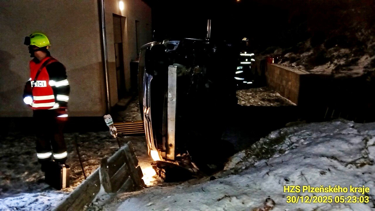 Podle mluvčího krajských hasičů Petra Poncara cestovaly ve voze čtyři osoby a jedna z nich skončila v péči záchranářů. "Zajistili jsme místo nehody a provedli protipožární opatření. Vyproštění nebylo potřeba," podotkl.