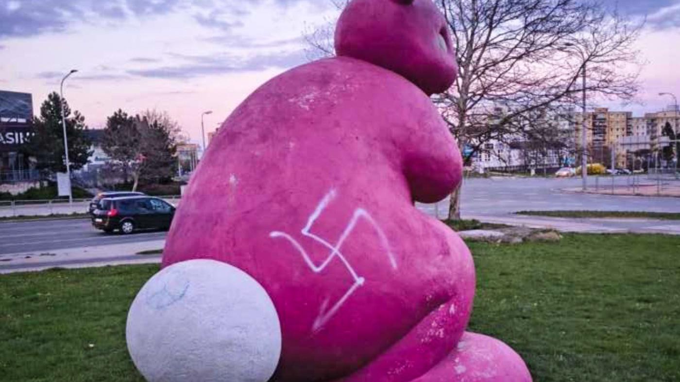 Plzeňští kriminalisté se od včerejšího dne zabývají případem poškození cizí věci, ke kterému došlo zatím v přesně nezjištěné době v Plzni v ulici K Pecím v blízkosti křižovatky ulic Gerská, Studentská. "Dosud neznámý pachatel tady poškodil recesní sochu králíka růžové barvy, na které vytvořil sprejem bílé barvy symbol svastiky o velikosti 60 x 60 centimetrů," upřesnila policejní mluvčí Michaela Raindlová.