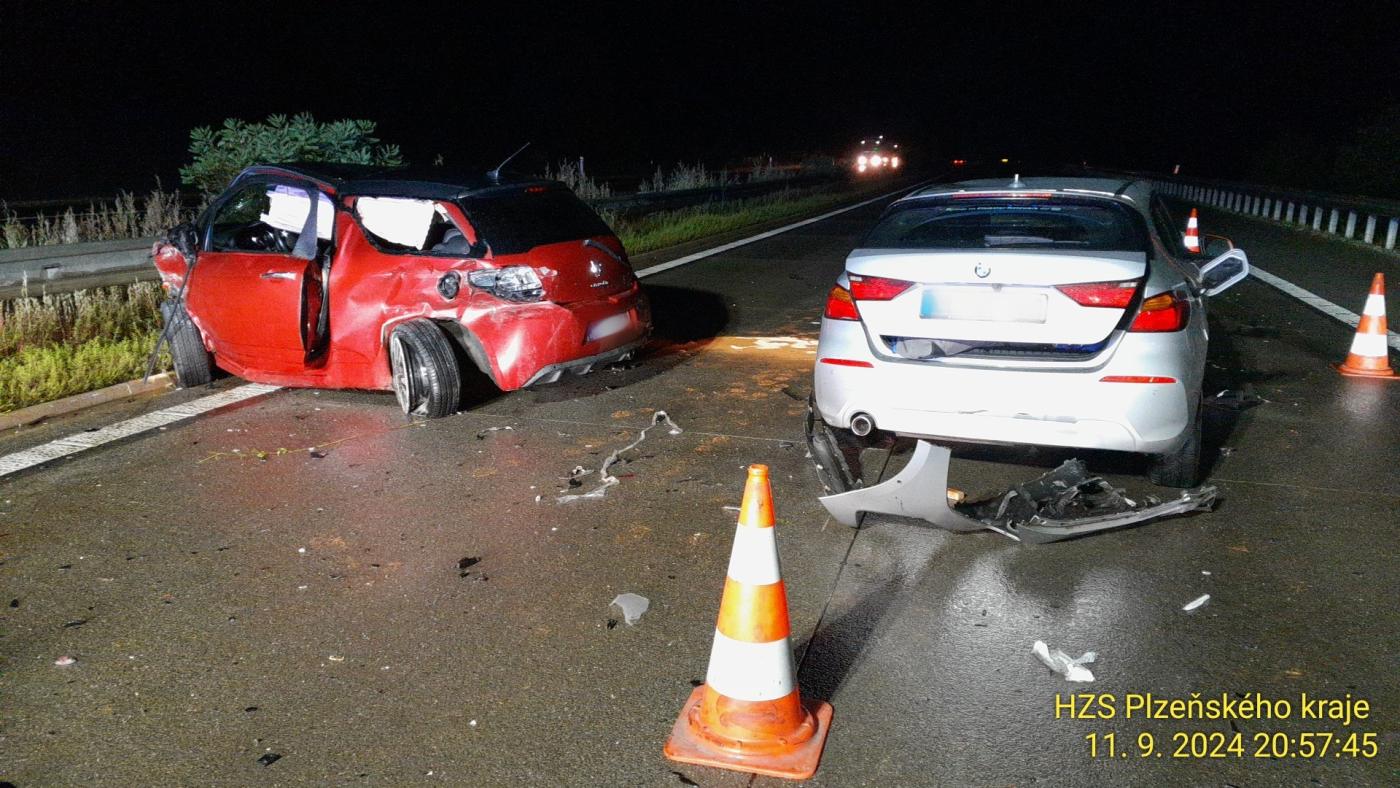 Dopravní nehoda dvou osobních vozidel uzavřela včera pozdě večer na několik hodin dálnici D5 na kilometru 109,5 ve směru na Rozvadov. Tři lidé utrpěli zranění, mladého muže dokonce musel ve vážném stavu transportovat do nemocnice vrtulník.