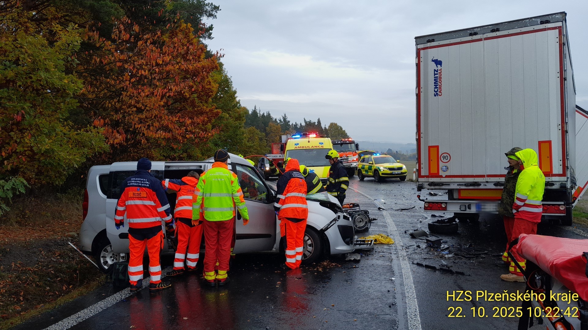 "Řidič ročník 1992 jel s vozidlem Fiat ve směru od obce Vidice na obec Bor, kdy z dosud nezjištěných příčin měl přejet do protisměru, kde se střetl s právě protijedoucím nákladním automobilem s přívěsem," uvedla policejní mluvčí Barbora Šmaterová.