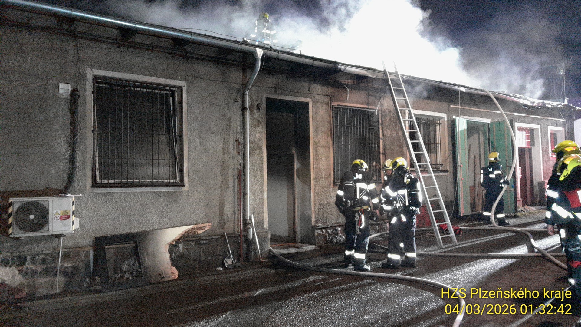 Všechny záchranné složky vyjížděly k požáru po půl 1 v noci. "Nasadili jsme tři úročné poudy. Uvnitř budovy se nacházely tři osoby, které jsme ke kontrole předali záchranářům. V rámci průzkumu jsme museli provést násilný vstup do dvou místností," potvrdil mluvčí krajských hasičů Petr Poncar. Hasiči podle něj pomocí termokamery vyhledávali skrytá ohniska a rezebírali střešní konstrukci.