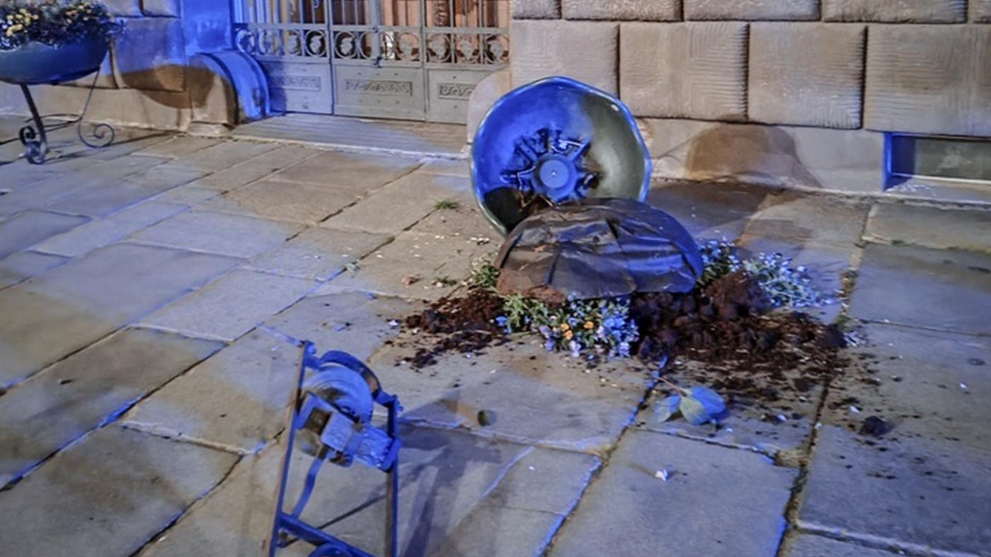Šestatřicetiletý muž podle mluvčí vylezl na okrasný květináč a následně se v několikametrové výšce zavěsil na upevňovací konstrukci zvonu, který je umístěn na historické budově. Ta jeho váhu ale nevydržela, ze zdi se vylomila a muž spadl dolů, přičemž převrátil a poškodil květináč pod ním. Na místo už tou dobou mířila hlídka strážníků, která trojici zastihla při veselém rozhovoru ve vedlejší ulici. "Vzhledem k pádu a možným vnitřním zraněním muže, byla na místo přivolána zdravotnická záchranná služba a také státní policie, která si událost převzala z důvodu podezření ze spáchání trestného činu," dodala.