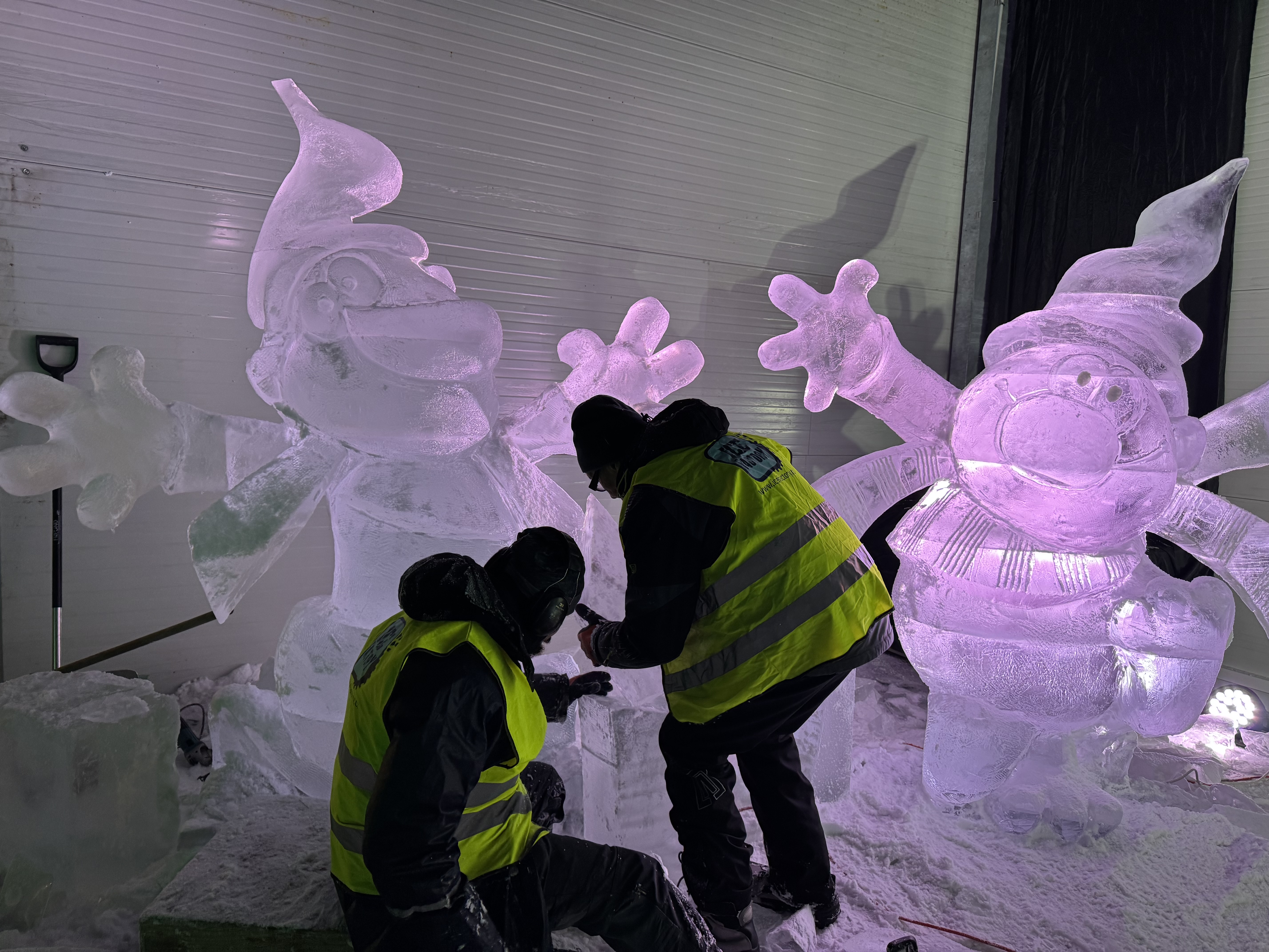 Sochaři pracovali v průběhu měsíční přípravy se 40 tunami čirého ledu. Vyrobit jednu ledovou postavu jim zabralo několik dní. "Nejnáročnější sochou byla Káťa a Škubánek, která je udělaná z více bloků a je mohutnější," popsal Lukáš Toušek z Ice Factory.