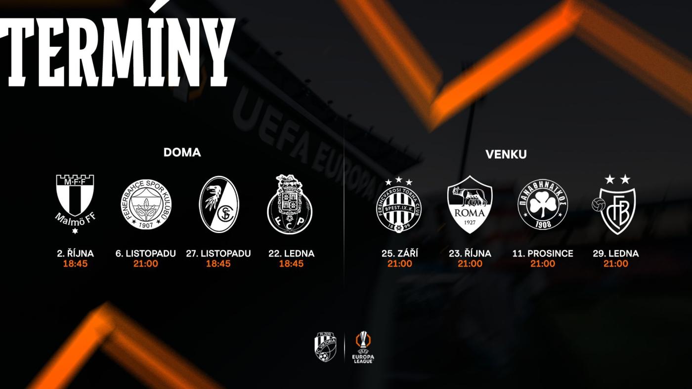 V pátek poznali fotbalisté Plzně osmičku soupeřů pro ligovou fázi Evropské ligy. V sobotu večer pak UEFA uvedla přesný jízdní řád všech zápasů. První duel Evropské ligy odehrajeme 25. září v Budapešti proti Ferencvárosi. Do Doosan Areny dorazí jako první švédské Malmö FF 2. října.