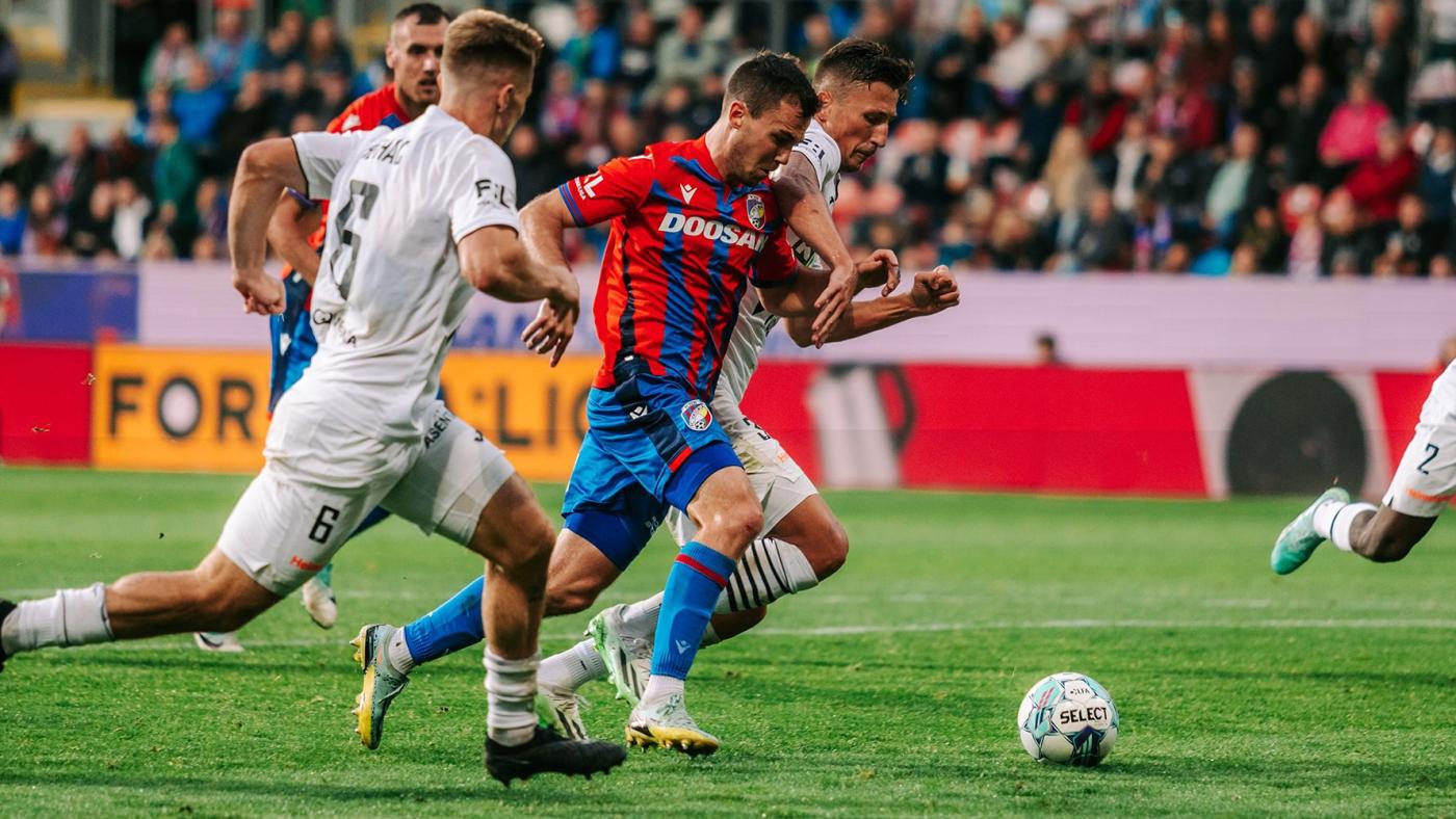 Poté, co prožil debut na evropské scéně, zažil osmnáctiletý gólman Viktor Baier i ten ligový. Podle očekávání ho trenér Miroslav Koubek poslal znovu mezi tyče. A nadějný brankář Viktorie musel být v úvodu v pozoru, dvakrát pálil nebezpečně Memič. Západočeši poprvé vážně zahrozili ve 12. minutě. Mosquerova tečovaná střela ale skončila mimo. Krátce před půlhodinou hry se do brejku dostávalo duo Kliment, Šulc. Prvně jmenovaný těžký míč nezpracoval ideálně a hostující obrana stihla zasáhnout. Ve 42. minutě měli Viktoriáni velké štěstí, když Jemelkovo zaváhání nedokázal využít Čavoš. V poslední minutě se domácí radovali, nakonec ale předčasně. VAR odhalil před zakončením Chorého faul a plzeňský útočník vyfasoval navrch žlutou kartu.