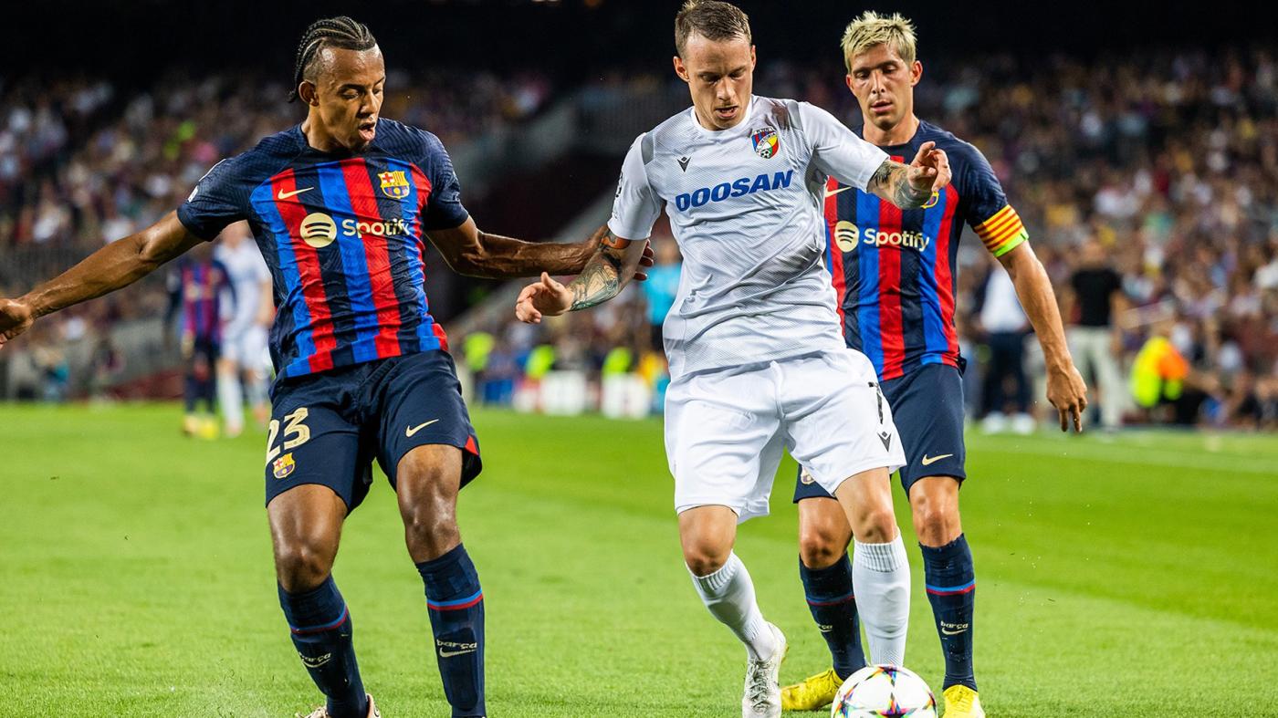 Viktoriáni začali skvěle a byli to oni, kteří se dostali hned do dvou brejkových situací, ale ani jednu nedokázali dotáhnout do úspěšného konce. Naopak Barcelona se radovala hned ze své první střelu na bránu. Rohový kop Ousmaneho Dembélého prodloužil Jules Koundé na volného Francka Kessiého a ve 13. minutě to bylo 1:0. Jako další se do dobré pozice dostal Ansu Fati, svou táhlou střelu zpoza vápna zamířil těsně mimo tři tyče. Do dvougólového vedení poslal Blaugranas kanonýr Robert Lewandowski, když z protiútoku po plzeňské ztrátě ve středu hřiště zakončil celou akci. Chvíli poté se Jindřich Staněk zaskvěl proti tečované střele Sergiho Roberta. Pět minut před koncem poločasu si nádherně vyměnil míč Lewandowski se zakončujícím Pedrim, jehož přehození Staňka na brankové čáře zachránil Jemelka. Ještě před odchodem do kabin viktoriáni snížili – Jemelka vyslal načechraný centr na hlavičku Jana Sýkory a Západočeši se mohli na Camp Nou radovat! Barcelona si ale téměř ihned vzala dvougólové vedení zpět, hlavou se trefil i Lewandowski, a poločas tak skončil 3:1 pro domácí.