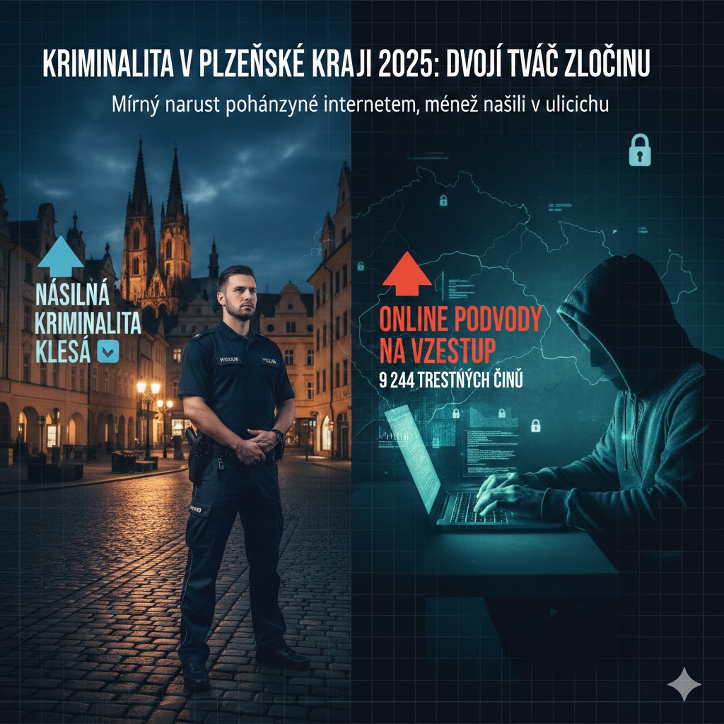 Každý druhý zločin v kraji se odehraje v Plzni a online predátoři jsou drzejší než kdy dřív. Nová data ČSÚ a policie ukazují, jak se změnila tvář zločinu v našem sousedství. Od drog v Rokycanech až po rekordní podvody.