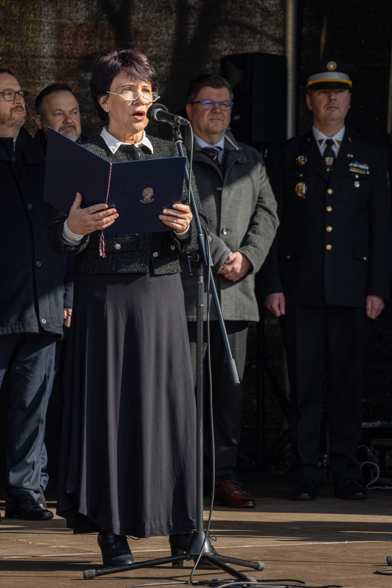 „Tomáš Garrigue Masaryk často zdůrazňoval, že demokracie není samozřejmost. Říkal, že demokracie je diskuse. Tím připomínal, že svobodná společnost stojí na otevřeném dialogu, vzájemném respektu a na ochotě naslouchat druhým. Demokracii nevnímal jen jako politický systém, ale jako způsob života, který vyžaduje odpovědnost každého z nás. Jeho odkaz je aktuální i dnes. Svoboda a demokracie nejsou samozřejmostí. Jde o slova, jejichž obsah musíme stále naplňovat. Každý svým jednáním přispívá k tomu, v jaké společnosti budeme žít,“ uvedla mimo jiné ve svém proslovu Eliška Bartáková, radní města Plzně pro oblast kultury a památkové péče.