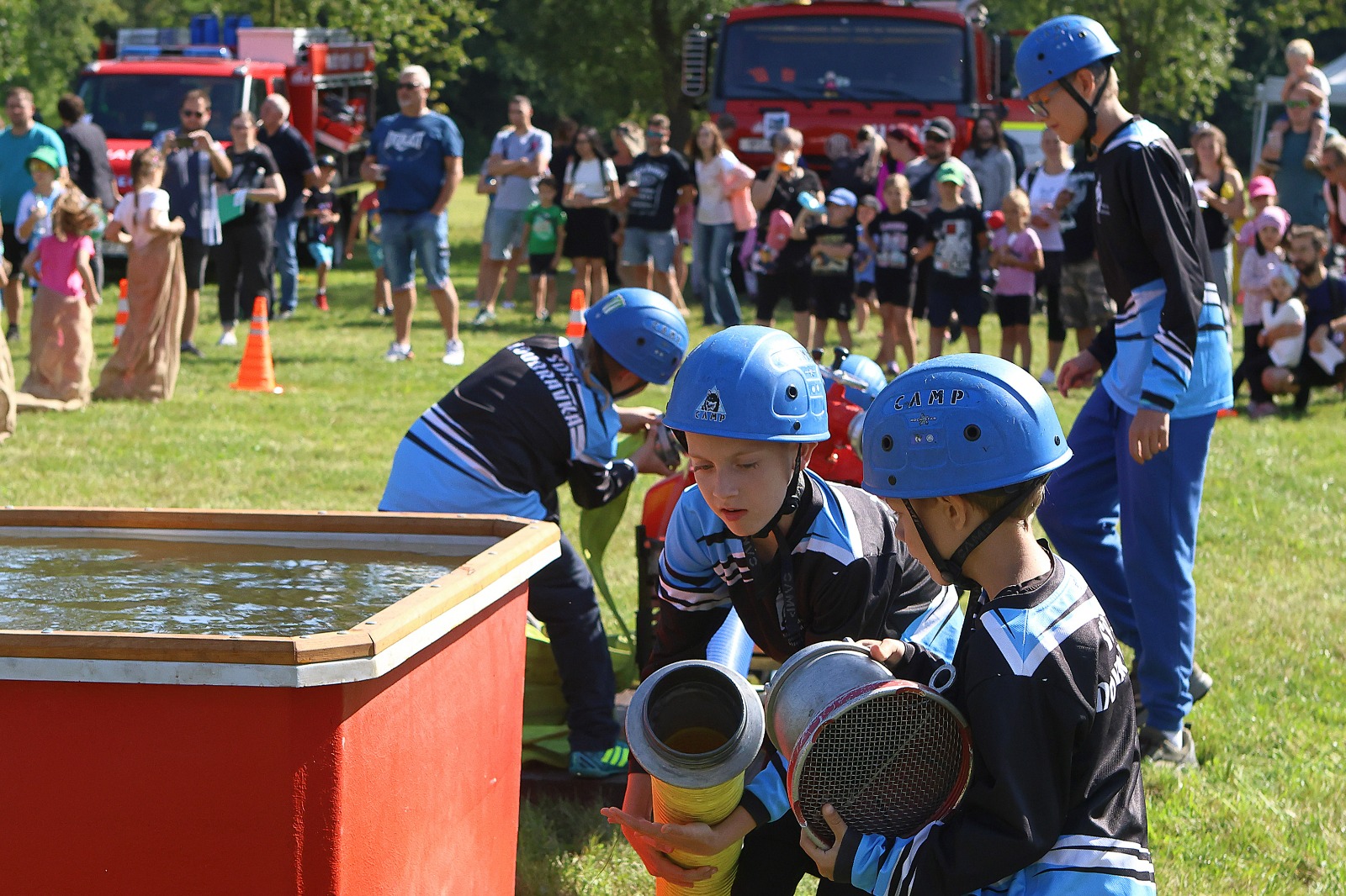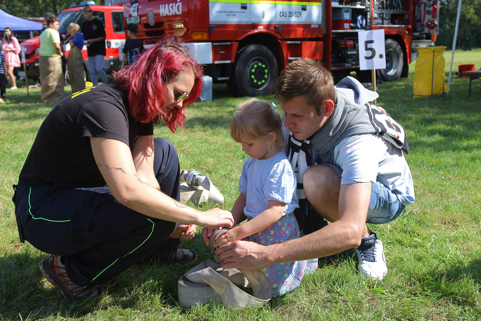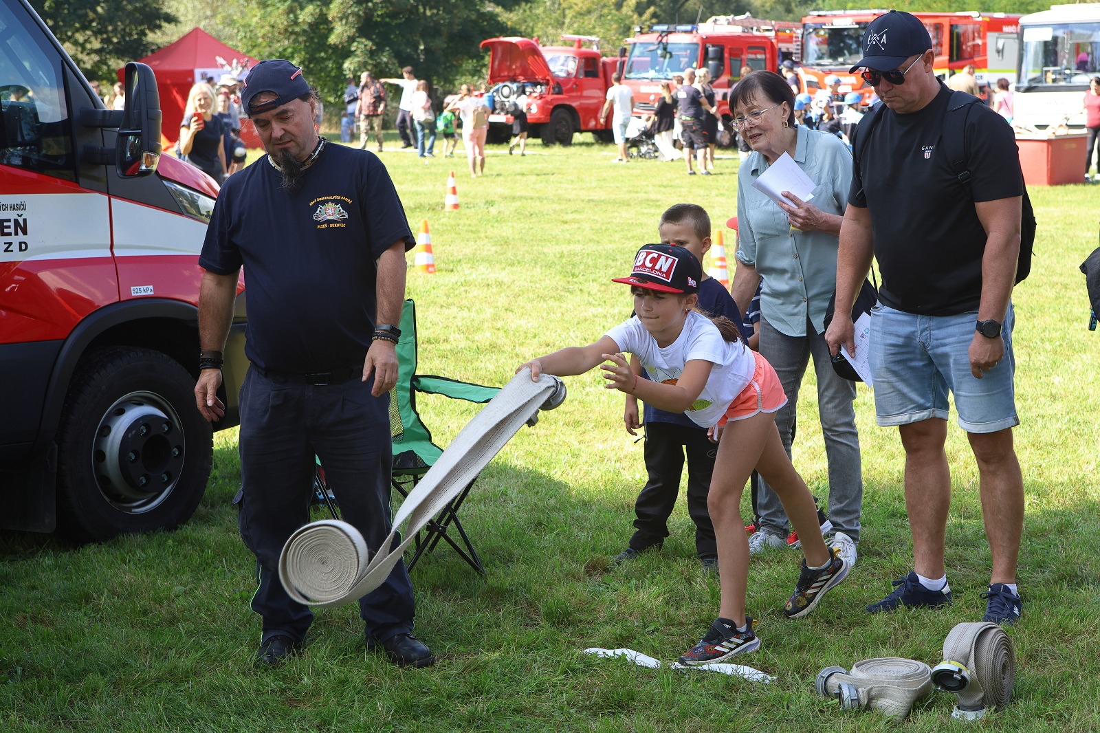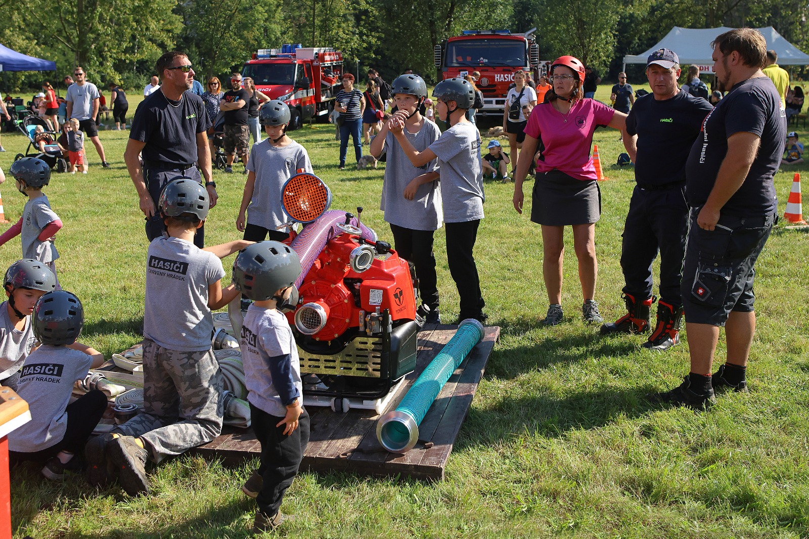 Na louce u sv. Jiří byla k vidění historická technika, současná technika, evakuační autobus a také záchranný člun. Hasiči přivezli ukázat i vozidlo, které se používá například při povodních v obtížně přístupných místech, jde o Pragu V3S. Děti si vozový park mohly nejen prohlédnout, ale také se do vozidel posadit a dozvěděly se řadu praktických informací. Připraven byl soutěžní okruh, který měl celkem 8 stanovišť. Děti hrály například speciální kuželky s hadicí, stříkaly proudnicí na terč, rozpojovaly a spojovaly hadice, překonávaly překážkovou dráhu nebo skákaly v pytli. Za splnění úkolů získali soutěžící odměnu. Připraveny byly i doprovodné disciplíny, děti si mohly vyzkoušet některé z důležitých uzlů nebo malovat. K vidění byl požární útok mladých dobrovolných hasičů. A nejen to. „Na závěr mohli diváci sledovat hašení požáru domečku z kartonu mladými hasiči. Děti si tak reálně vyzkoušely, jak takové hašení probíhá,“ popsal starosta Sboru dobrovolných hasičů Plzeň Doubravka Roman Svoboda.