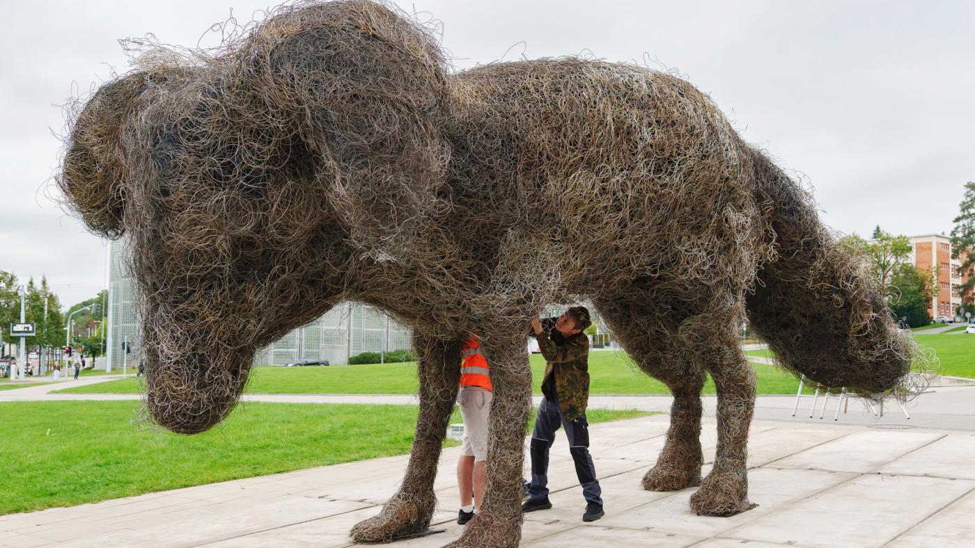 ZLÍN – Od úterního rána zdobí dolní část náměstí T. G. Masaryka ve Zlíně Vulpes Gott. Čtyřtunovou sochu psa zapůjčil umělec František Skála pro výstavu Němá tvář, která je aktuálně k vidění v Krajské galerii výtvarného umění ve Zlíně.