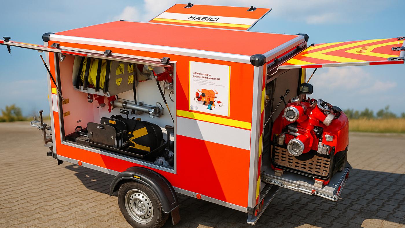 V novém přívěsu bude umístěno veškeré potřebné vybavení – mimo jiné stříkačka, čerpadlo nebo vysavač vody. Výhodou je především jeho kompaktnost a snadná manipulace.
