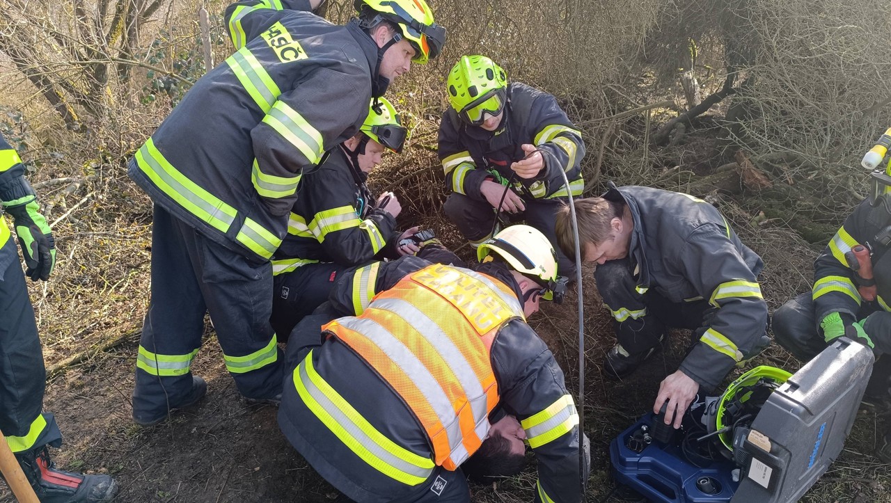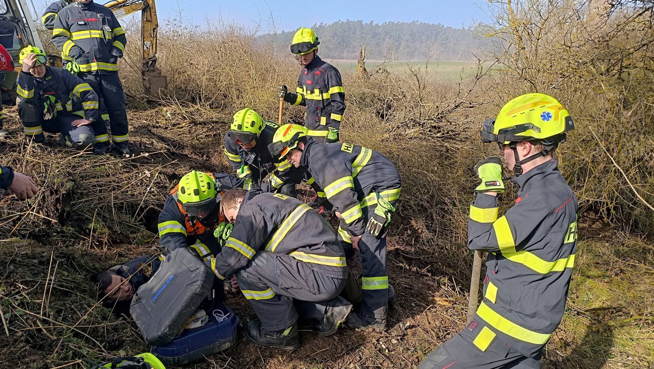 "Nedaleko Pankráce se snažíme zachránit loveckého psa, který při dohledávání postřeleného divočáka zaběhl do zřejmě jezevčí nory," potvrdil mluvčí krajských hasičů Petr Poncar. Hasiči si nejprve museli upravit a vyčistit křovinatý terén. "Na pomoc jsme si přizvali minibagr. K vyhledávání využíváme štěrbinovou kameru," popsal.