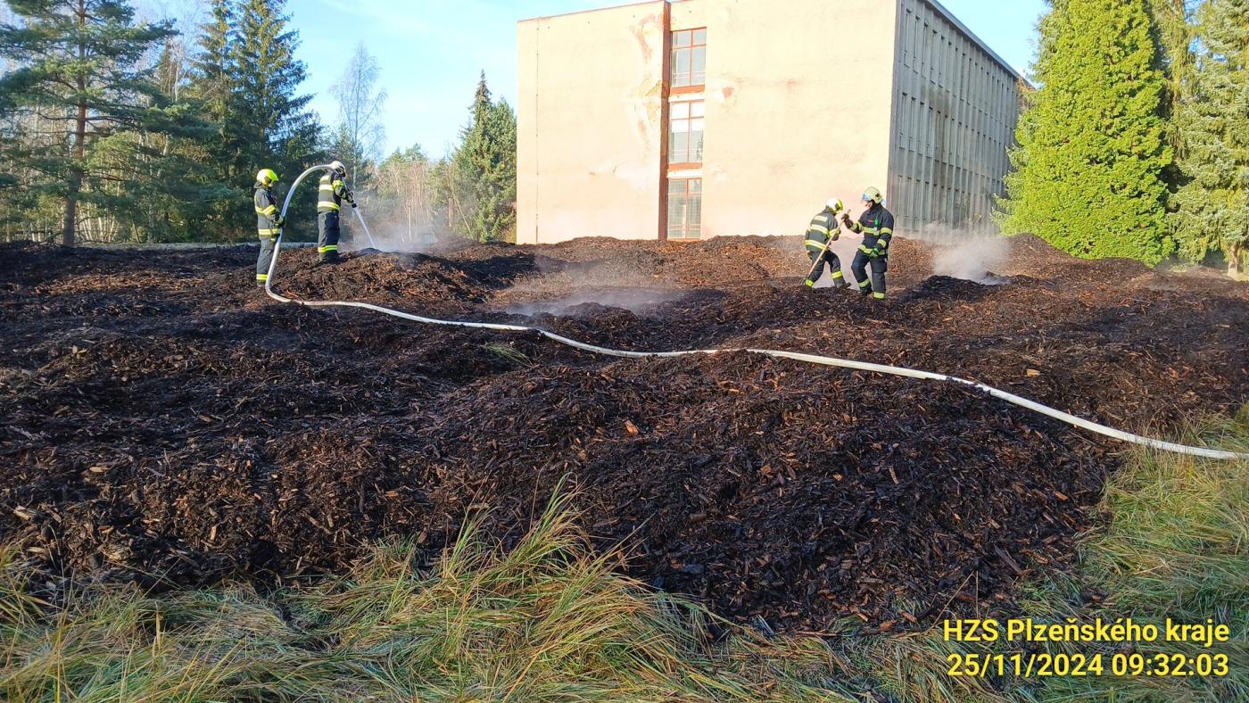 Dvakrát v průběhu dvou dní zasahovali hasiči u požáru štěpky v areálu letiště Líně. Proč k požárům došlo, není zatím jasné.