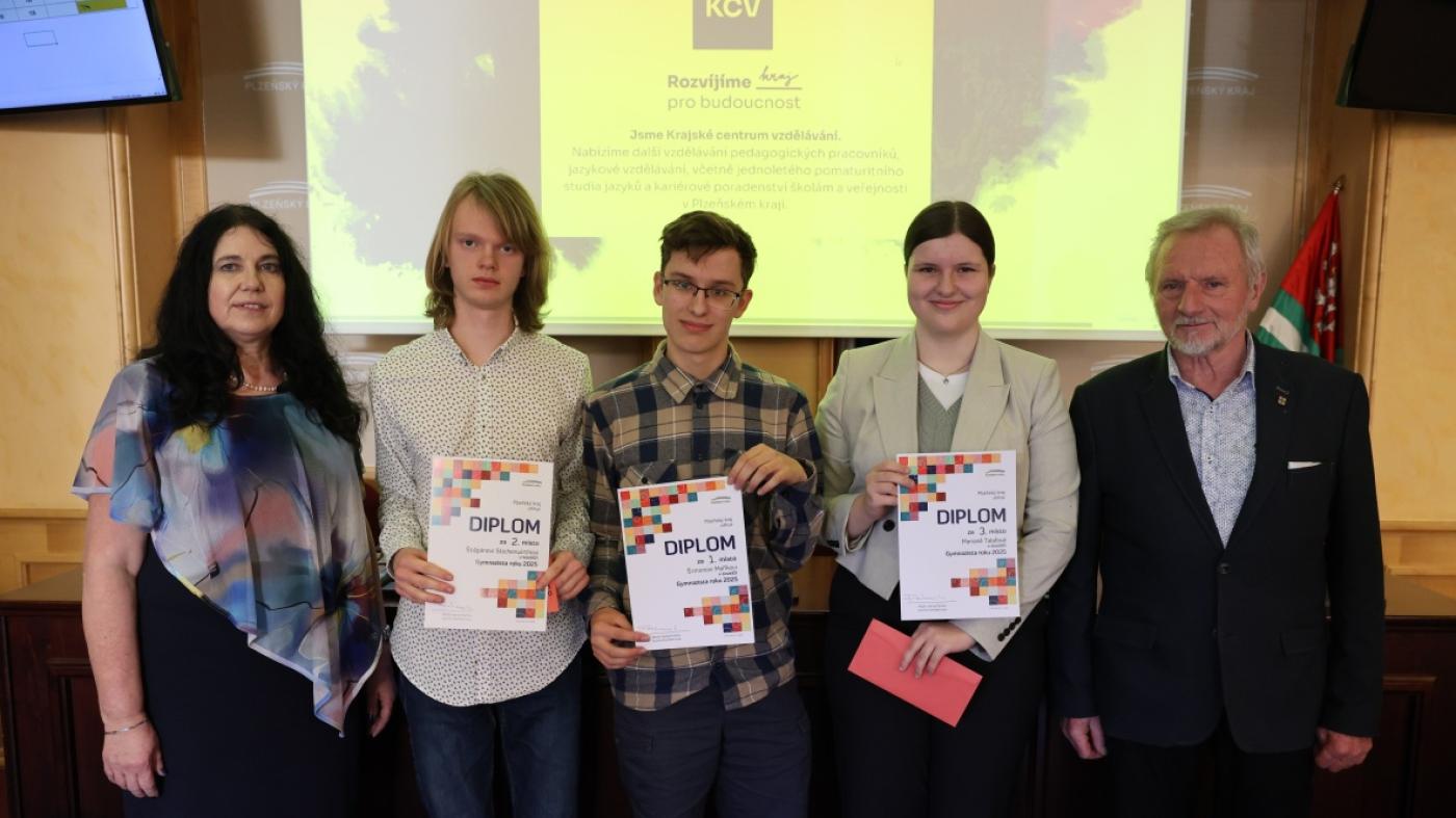 Nejlepší studenti gymnázií z Plzeňského kraje poměřili síly ve vědomostní soutěži Gymnazista roku. Vítězem letošního 9. ročníku soutěže je Šimon Mařík z Církevního gymnázia Plzeň, který se ve finálovém kvízu utkal se Štěpánem Stichenwirthem z Gymnázia Jaroslava Vrchlického v Klatovech a Marianou Talafovou z Církevního gymnázia Plzeň.