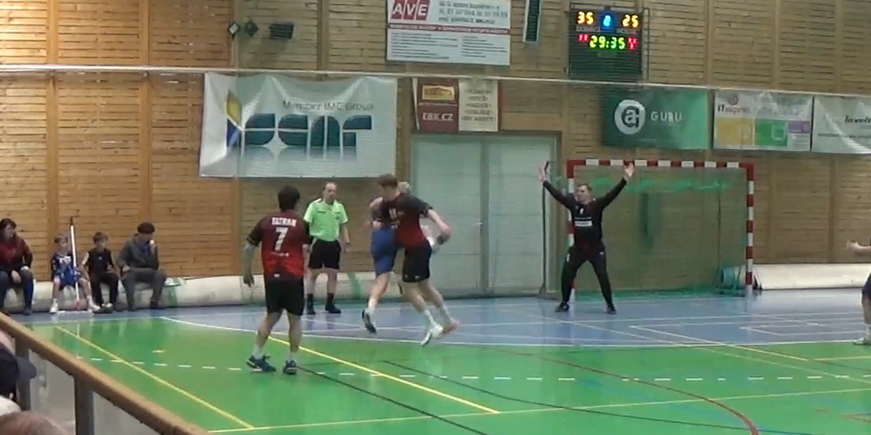 Svěřenci trenéra Michala Tonara vlétli do zápasu razantně a bleskově si vypracovali tříbrankové vedení. Hosté z Bohunic sice v první půli kousali a snažili se držet krok, ale domácí ofenziva pod taktovkou Matěje Sedláčka byla k nezastavení. Právě Sedláček se stal s 9 brankami nejlepším střelcem utkání. Do kabin se odcházelo za stavu 18:11 pro domácí.