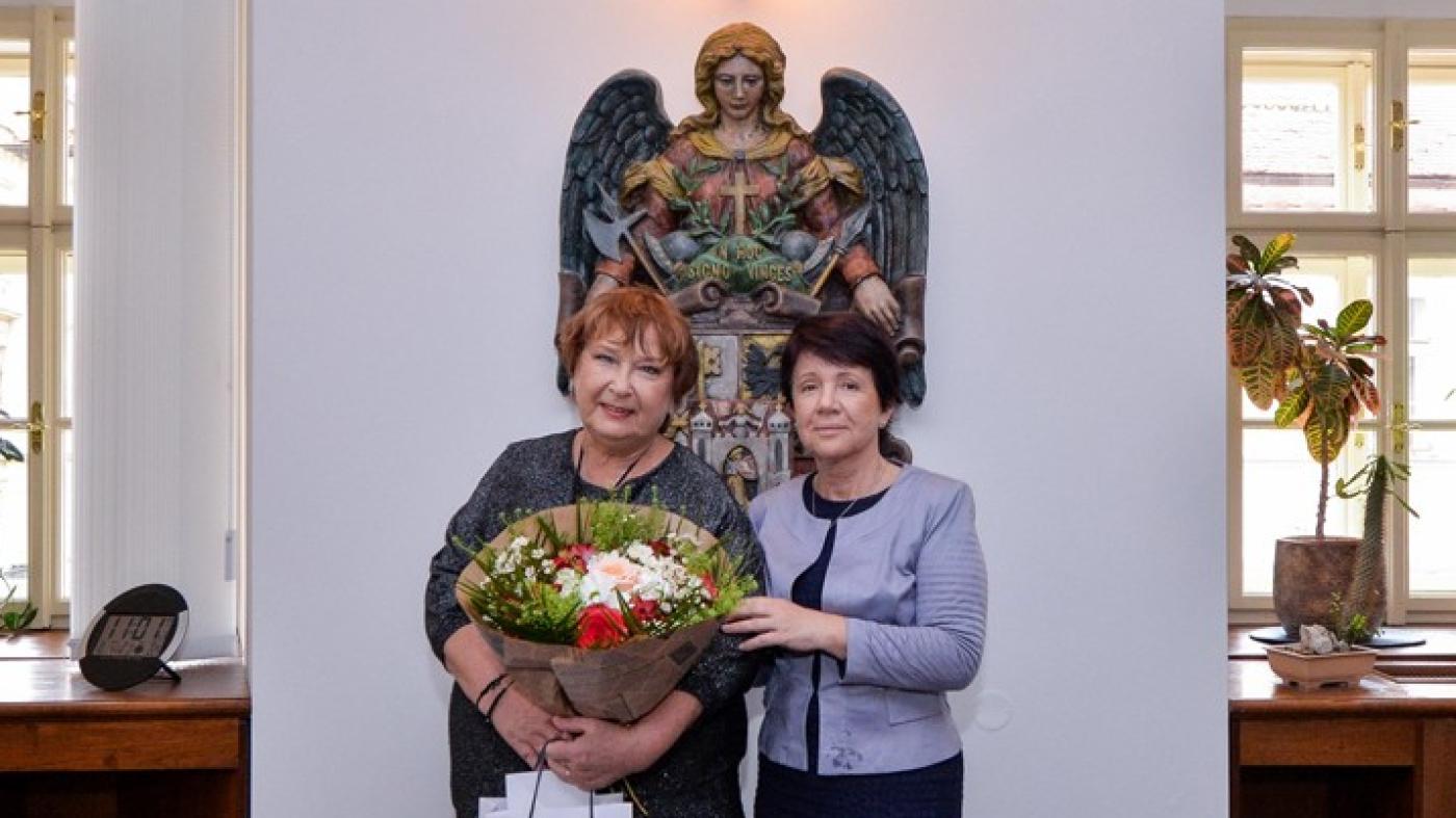 „Přeji vám hlavně zdraví a stále mnoho elánu. Už desítky let se staráte o chod divadla Pluto, které si našlo své místo na plzeňské divadelní scéně. Vaší práce si velmi vážím,“ řekla Eliška Bartáková.