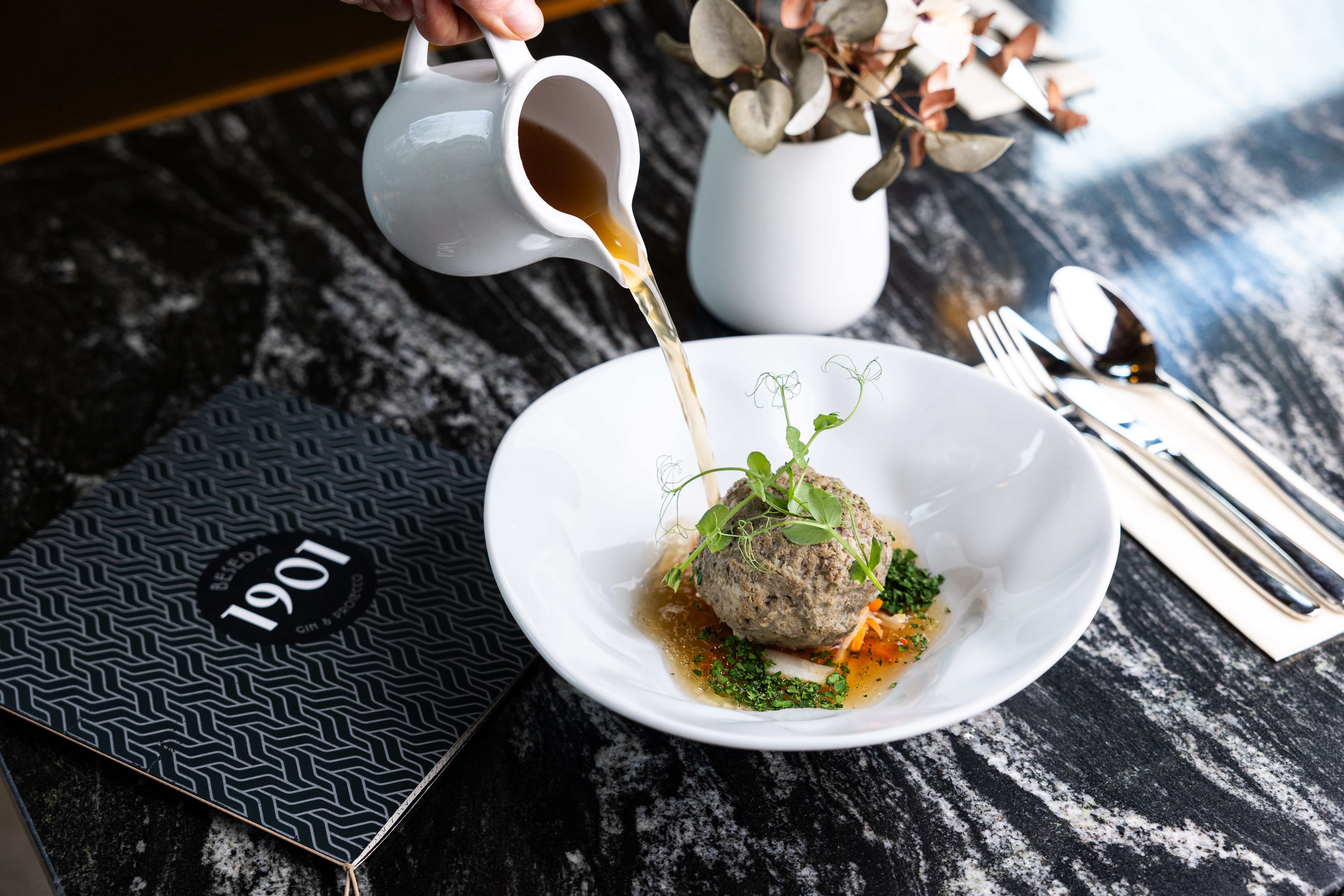 „Každý by si u nás měl najít to své. Rádi bychom, aby Měšťanská beseda znovu ožila tak, jak tomu bylo v minulosti, kdy byla oblíbeným a tradičním místem pro setkávání. Hodně jsme se u našich jídel zaměřili i na kvalitu surovin. Maso bereme z vlastní farmy v bio kvalitě plemene Aberdeem Angus. Na čepu nechybí Pilsner Urquell či lokální pivovar Zlatá Kráva. Rozhodně bych doporučil i prosecco sorbet, jehož recepturu jsme dlouho vyvíjeli. Myslím, že si u nás každý vybere,“ dodal Radovan Sochor, který by chtěl po vzoru pražských podniků jako Cafe Louvre, Savoy, Imperial či Slavia z konceptu 1901 udělat podobný podnik celodenního provozu po celý rok.