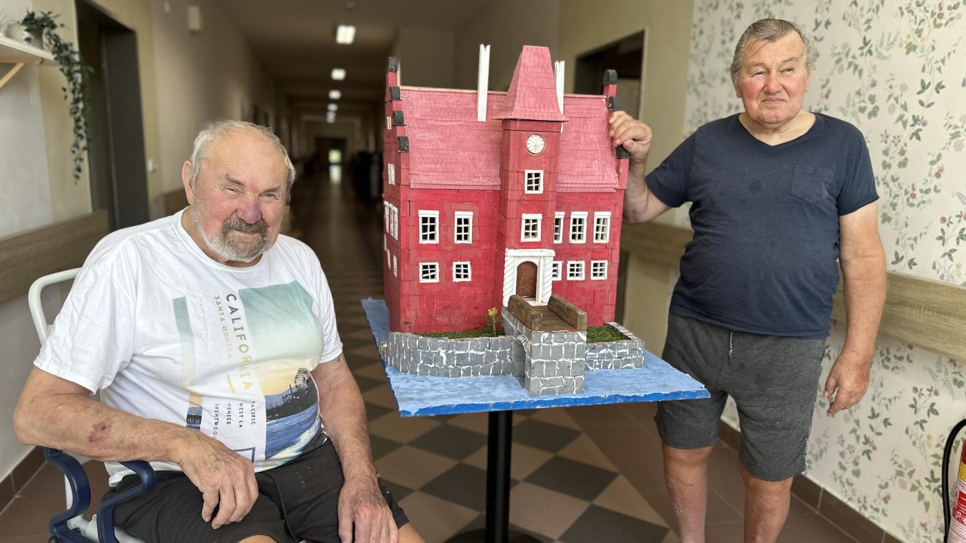 Pánové Václav Koláček a Miroslav Votýpka jsou nejen dva sehraní spolubydlící, ale společně vytváří i modely hradů a zámků. Tentokrát z dřevěných odřezků vyrobili zámek Červená Lhota.