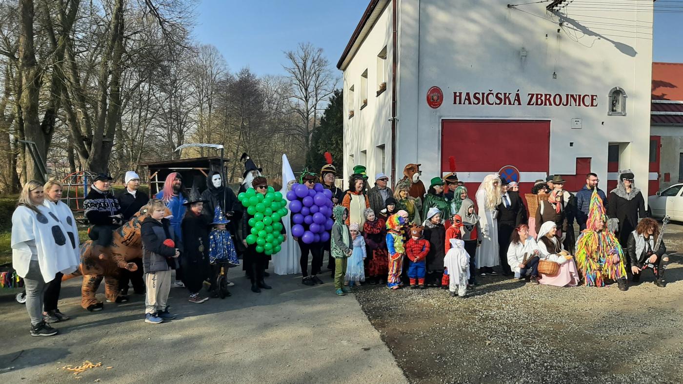 V půl deváté ráno se sešly masky u hasičské zbrojnice, odkud se v devět hodin po symbolickém předání klíče od města vydal masopustní průvod na cestu obcí.
