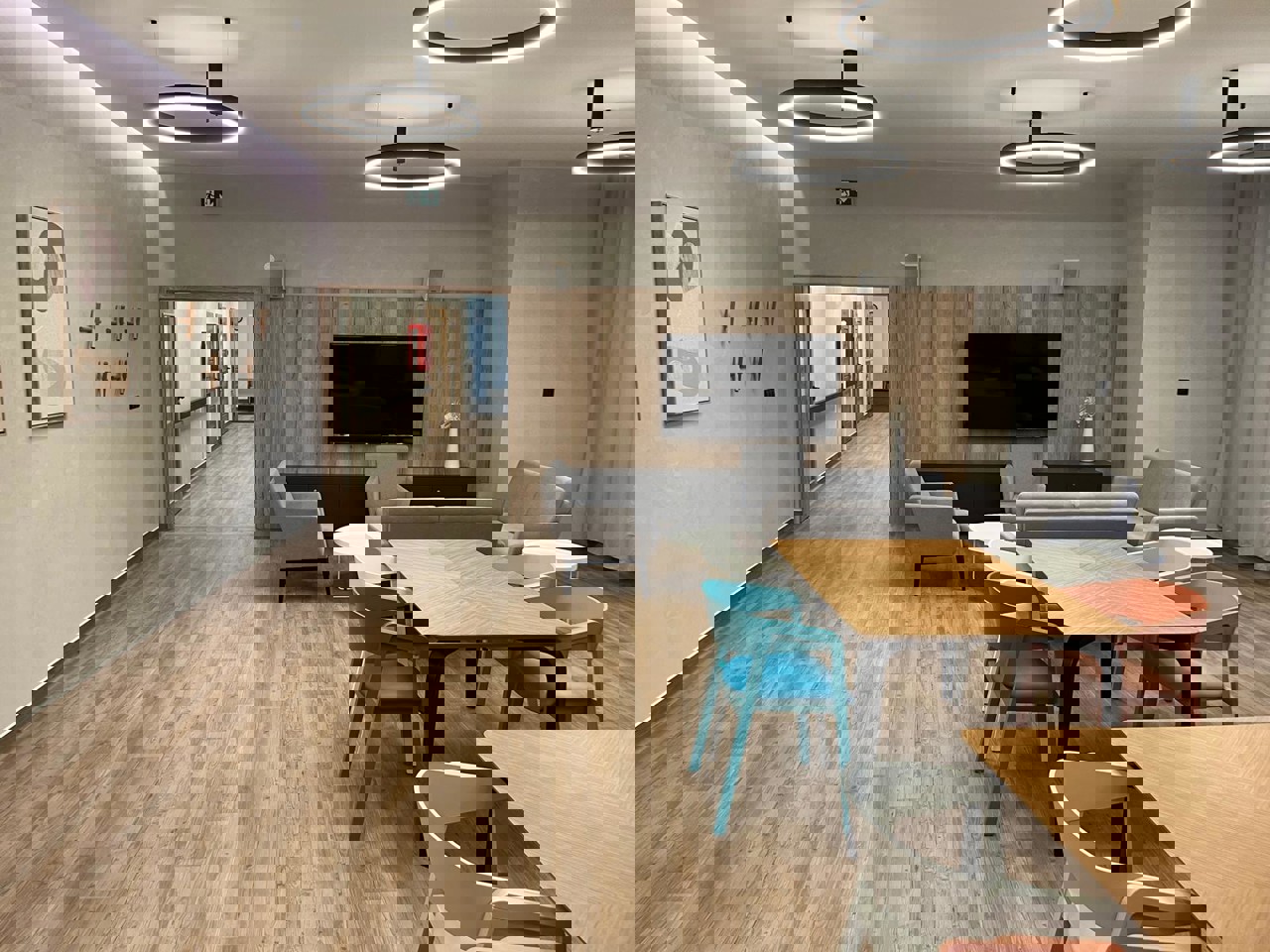 Z dotací IROP jsme také zrekonstruovali bývalou jídelnu v domě na Východní 16 a vytvořili z ní moderní společenskou místnost. Tento prostor je určen pro aktivity našich klientů – cvičení, rukodělné dílny, přednášky, společenské akce nebo setkávání komunit.
