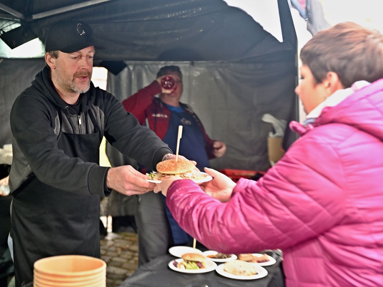 V Bolevci nebyla nouze ani o gastronomické zážitky, lidé si mohli pochutnat na pečené huse, vydatné polévce, paštice, nechyběla ani sladká tečka. „Husa je pro svatomartinské menu typická, může to ale být i jiný velký pták, třeba kachna. K menu patří také kaldoun, což je vývar z drobů. Já připravuji ještě paštiku z husích jatýrek, je možné připravit i z kachních a drůbežích. Na závěr patří ještě svatomartinský rohlíček, v němž by měla být ořechová, maková či povidlová náplň. Osobně si nejvíce pochutnám na kombinaci kyselého a sladkého zelí a té šťávičky z masa,“ řekl šéfkuchař Petr Stupka, který v Bolevci předvedl svou kuchařskou show.